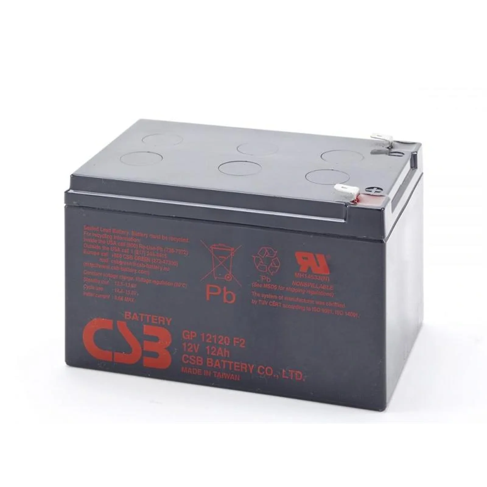 Акумуляторна батарея для ИБП CSB GP 12120 створена за AGM-технології, на кшталт герметичного свинцево-кислотного пристрої (SLA). Батарея може подавати як резервне, так і основне живлення до потрібного обладнання. Як пристрій з постійним струмом, акумулятор використовується в установках безперебійної подачі енергії, наприклад, в пожежних або охоронних системах сигналізації, для телекомунікацій, в комп"ютерному обладнанні, апаратурі для зв"язку. Ємність акумуляторної батареї для ДБЖ CSB GP 12120 дорівнює 12 А • год, такої кількості вистачає для повного заряду потрібної техніки. В буферному режимі акумулятор серії GP (широкого застосування) експлуатується 5 повних років, або 250 циклів роботи. Акумуляторне пристрій CSB GP12120 є не обслуговуються, не потрібен долив рідини. Односторонній клапан запобігання дає захист, виключається ймовірність вибуху і виділення газу через герметичності самого пристрою батареї. Ударостійкий корпус рятує від пошкоджень при перенесенні. Широкий діапазон температури для зберігання акумулятора: від -15 ° C до +40 ° C.