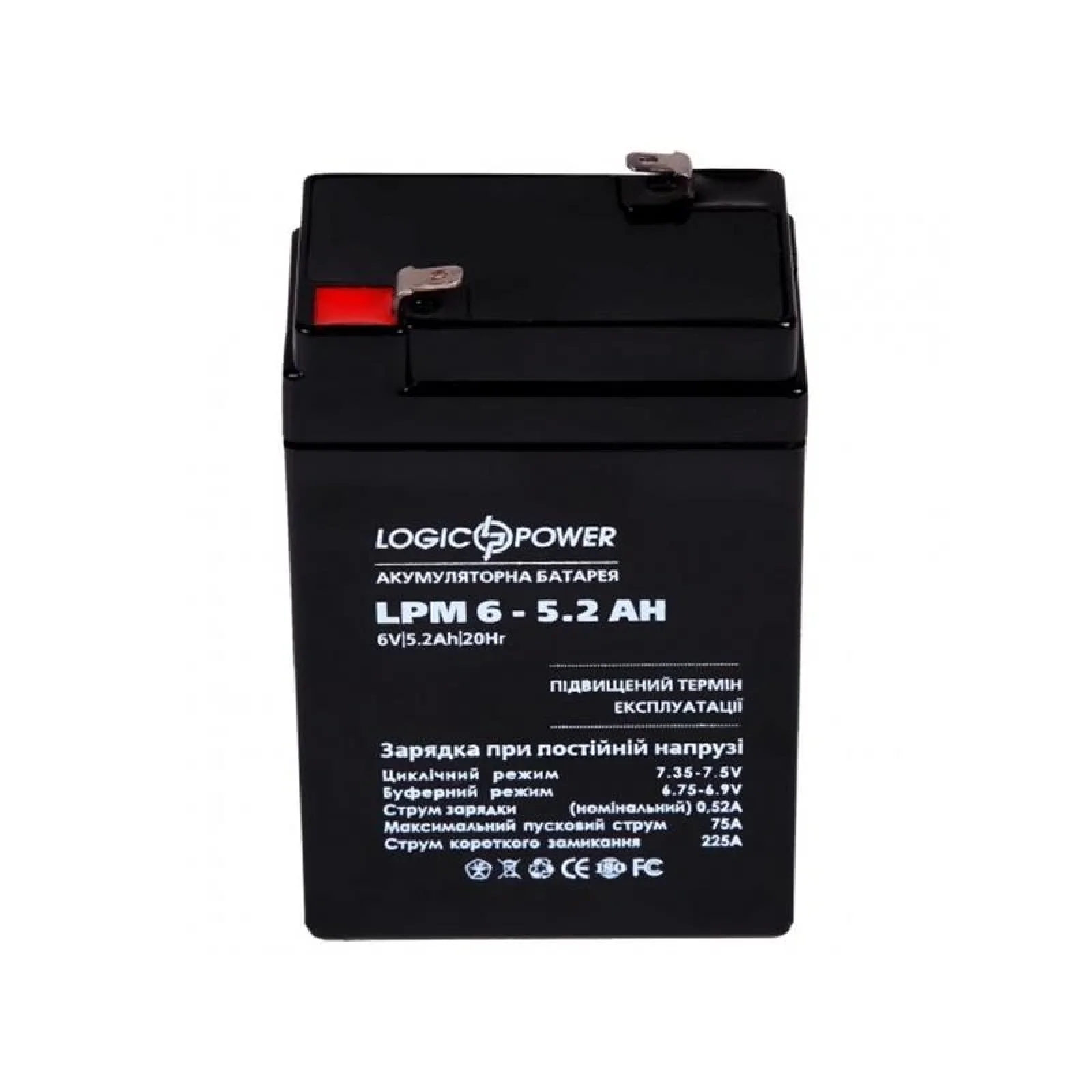 Мелковольтний свинцево-кислотний акумулятор АКБ LPM 6-5.2 AH - це надійне в експлуатації пристрій, виготовлений із застосуванням сучасної технології AGM (Absorbent Glass Mat), що говорить про високих якісних і технічних характеристиках акумулятора і його більш тривалому терміні експлуатації. Основні характеристики кислотно свинцевого акумулятора LPM 6-5.2 AH: • Тип: кислотний мелковольтний АКБ (AGM технологія) • Номінальна напруга: 6V • Ємність АКБ: 5.2 AH • Температура зберігання: -20 ° С - + 50 ° С • Робоча температура: + 25 ° С +/- 5 ° С Корпус акумулятора герметичний і виконаний з високоміцного пластика, при дотриманні правил експлуатації, дана модель мелковольтного АКБ зможе прослужити максимально тривалий термін.