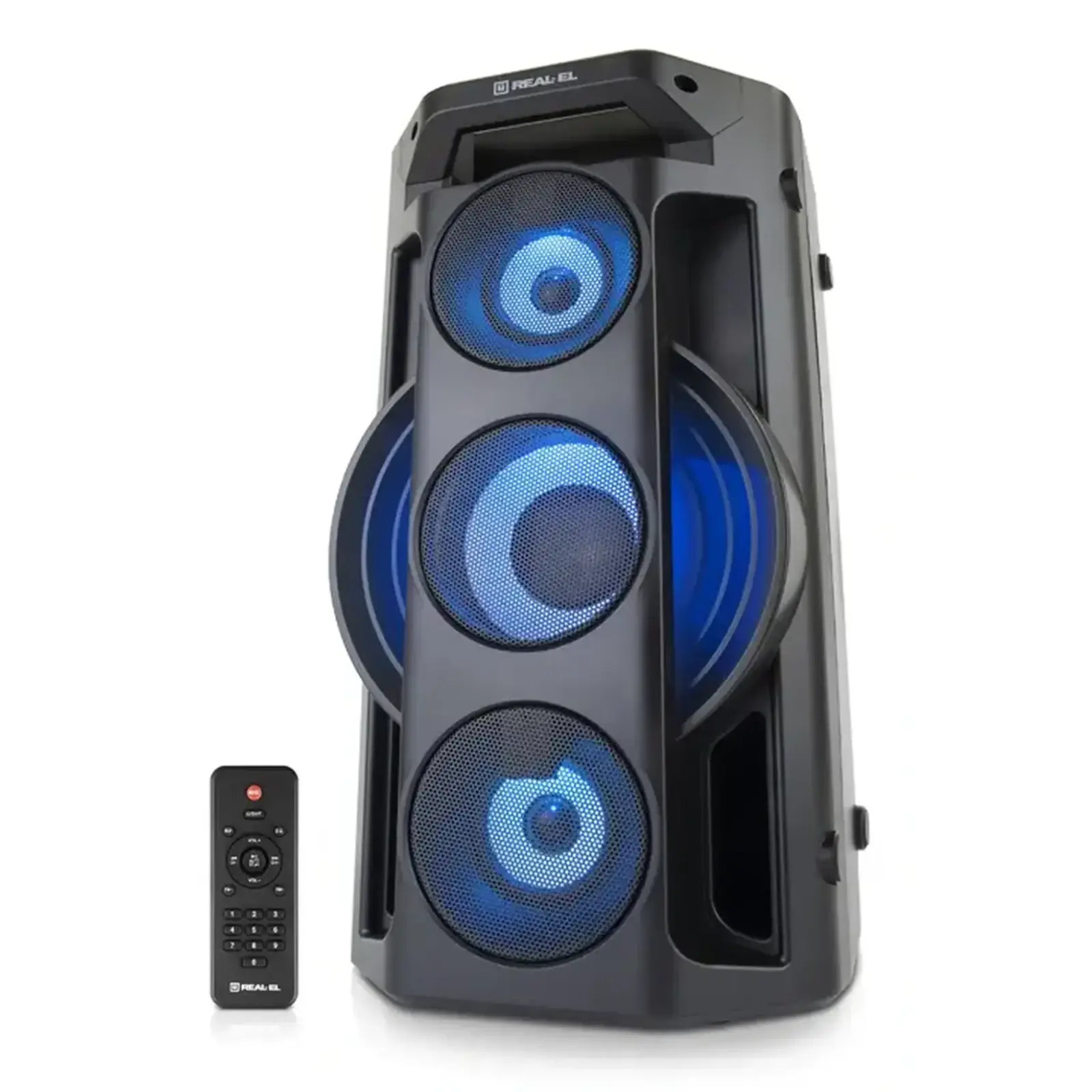 Мультимедійна портативна акустична система REAL-EL X-777 має сучасний дизайн та якісне звучання. Широкий функціонал "бумбокса" дозволяє прослуховувати музику підключаючи мобільний пристрій, ПК, TV, ноутбуки і т. п., як через вивід AUX, так і по Bluetooth. USB і Micro SD card роз'єми дають можливість прослуховувати аудіо-файли з flash носіїв. X-777 відмінний супутник для відпочинку на природі, літій-іонний акумулятор на 8800 mAh забезпечить вас музикою на вельми тривалий час.