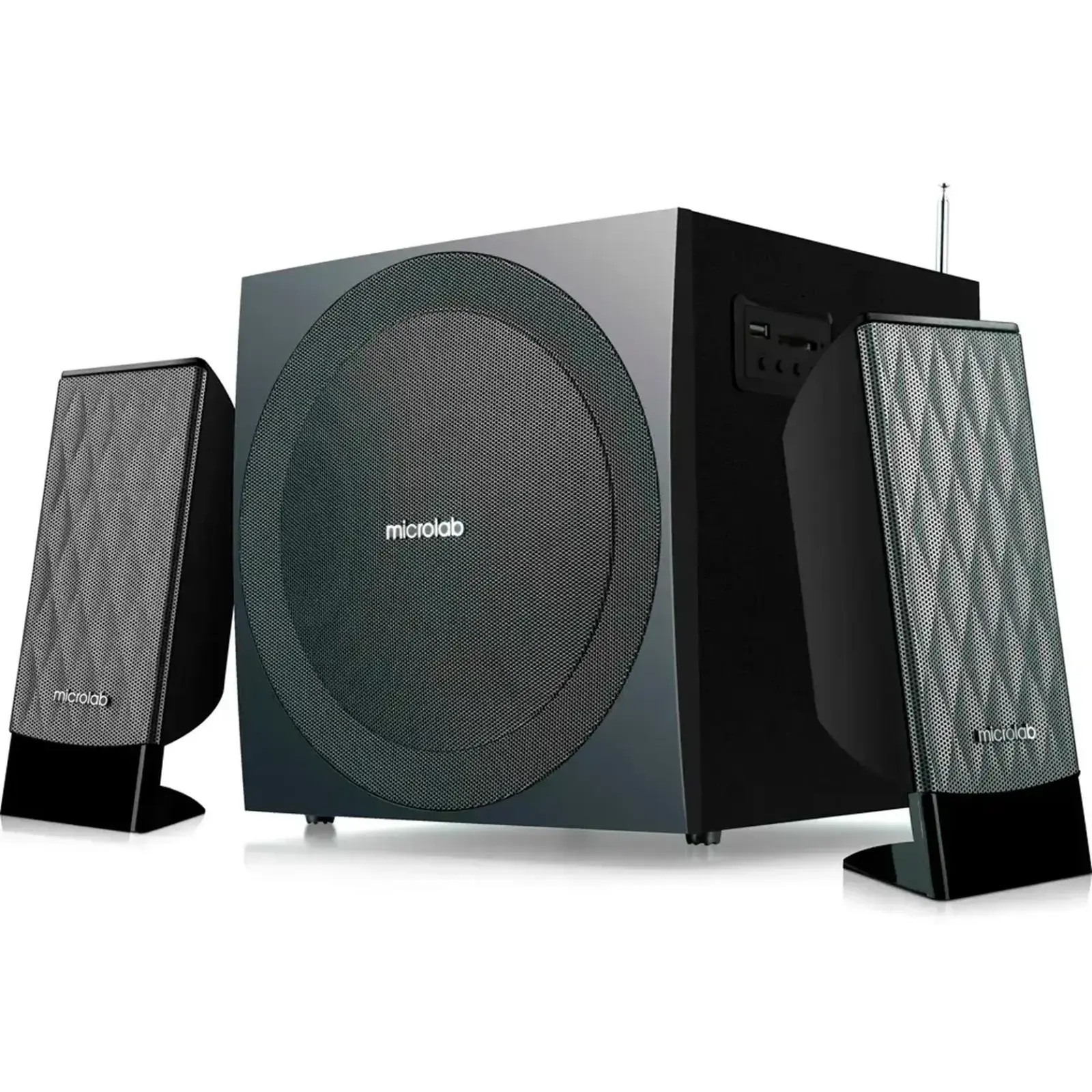 Microlab M-300U - мультимедійна акустична система з FM-тюнер, USB та SD роз'єм. Кожне джерело дозволяє слухати свою улюблену музику без підключення до комп'ютера або ноутбука і роблять акустику ідеальним рішенням для розміщення в робочому просторі або в зоні відпочинку. Витончена, тонка ніжка прикрашає систему і перетворює її в елегантний елемент інтер'єру.