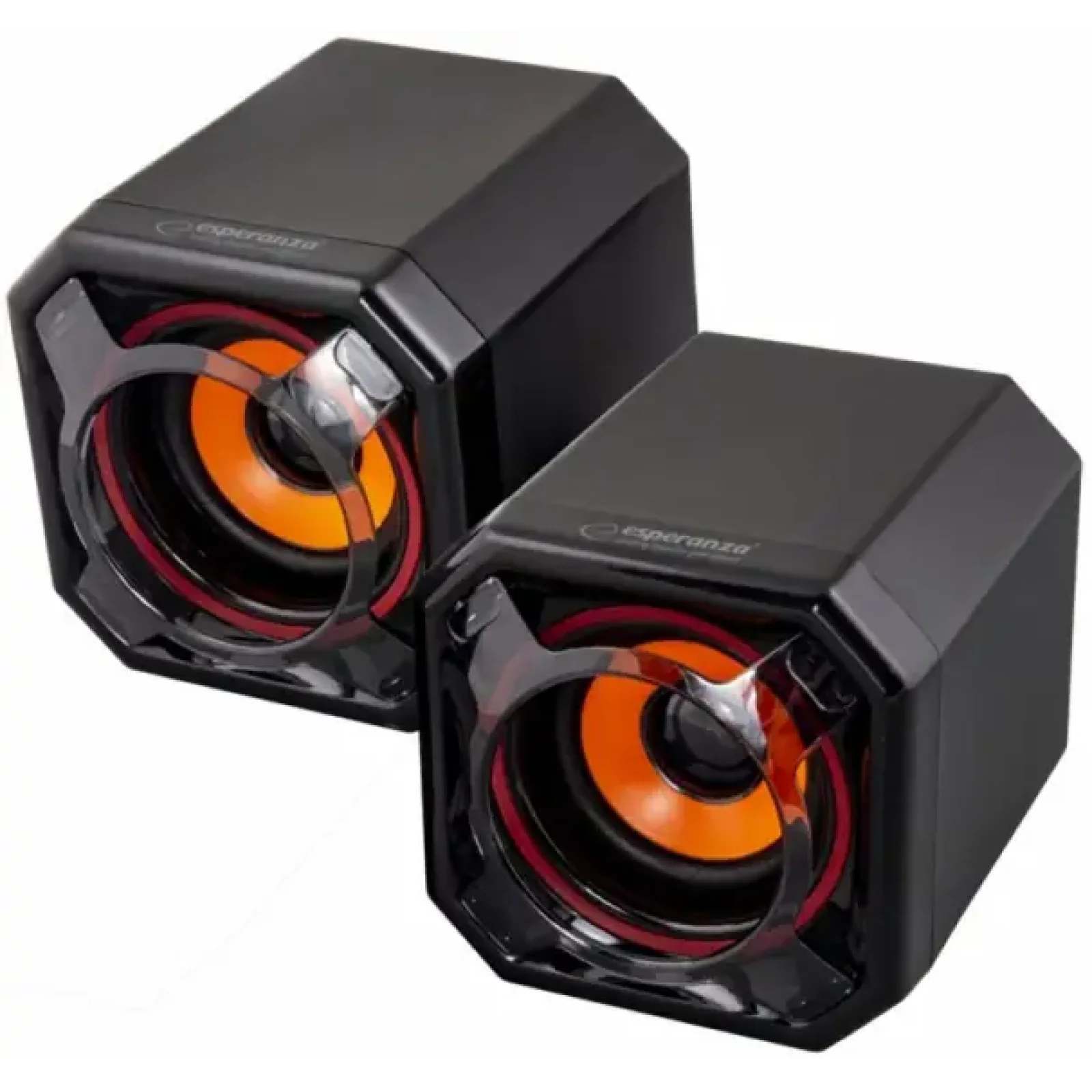Високоякісні стереодинаміки Esperanza TIMBA для ноутбуків і настільних комп'ютерів. Вони гарантують чистий і природний звук. Вони працюють з усіма комп'ютерами, які мають вихід на динамік і вихід USB. Вони мають вбудований регулятор гучності. Високоякісні матеріали, які використовуються у виробництві, захищають від електризації та генерації електромагнітних перешкод.