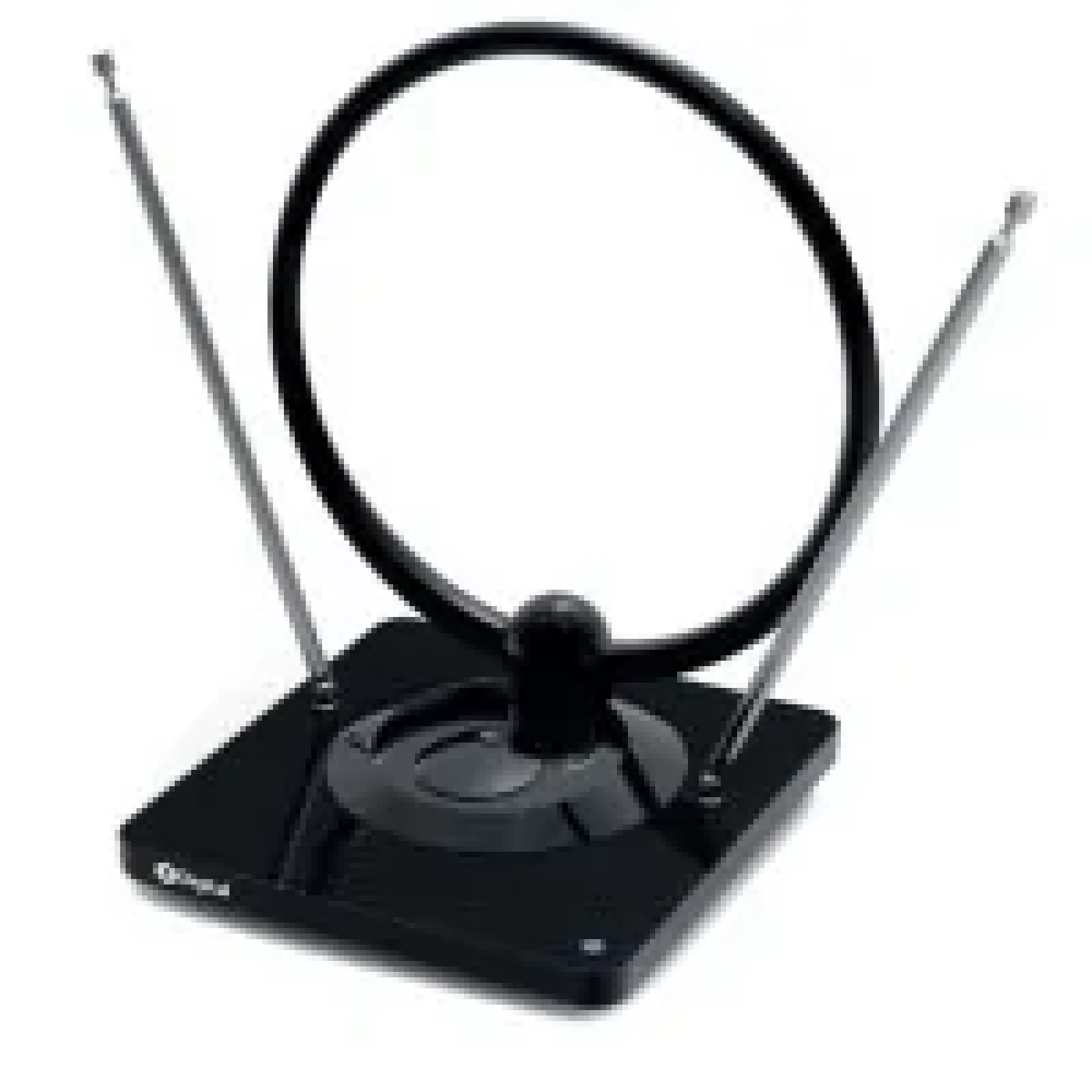 Антенна комнатная с усилителем; прием аналогового и цифрового телевизионного сигнала, DVB-T, DVD-T2 и FM-радио; коэффициент усиления: до 36 дБ; частотный диапазон: 87.5–230 МГц / 470-862 МГц; Внешний блок питания постоянного тока (12В/50мА); длинна кабеля 1.5 м