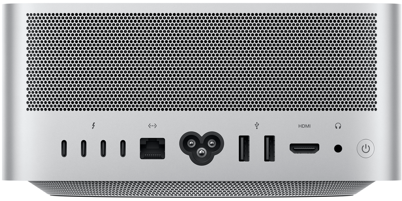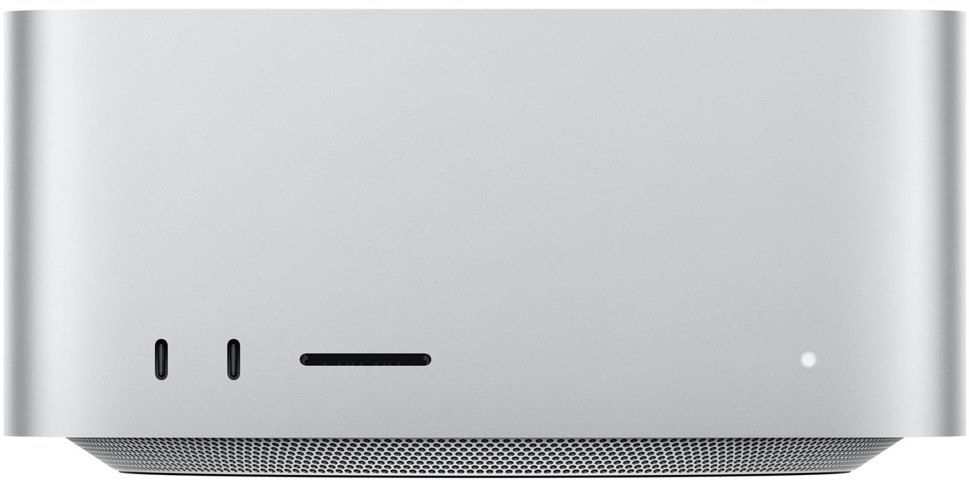 Благодаря эффективности процессора Apple чипы M2 Max и M2 Ultra в очень компактном Mac Studio работают без помех, как и ваше воображение. Mac Studio идеально располагается под большинством мониторов, а его удивительная мощность и множество портов – просто у вас под рукой.