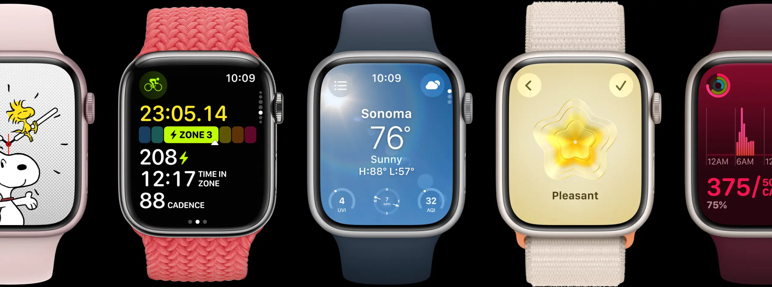 Watch S9 работает на WatchOS 10 и поставляется в корпусе из алюминия и нержавеющей стали. Варианты цветов включают Starlight, Midnight, Silver, (PRODUCT)RED и Pink для алюминиевой модели. Версия из нержавеющей стали имеет Silver, Gold и Graphite. Apple также анонсировала новый ремешок для часов из материала FineWoven, который имеет меньший углеродный след, чем кожа.