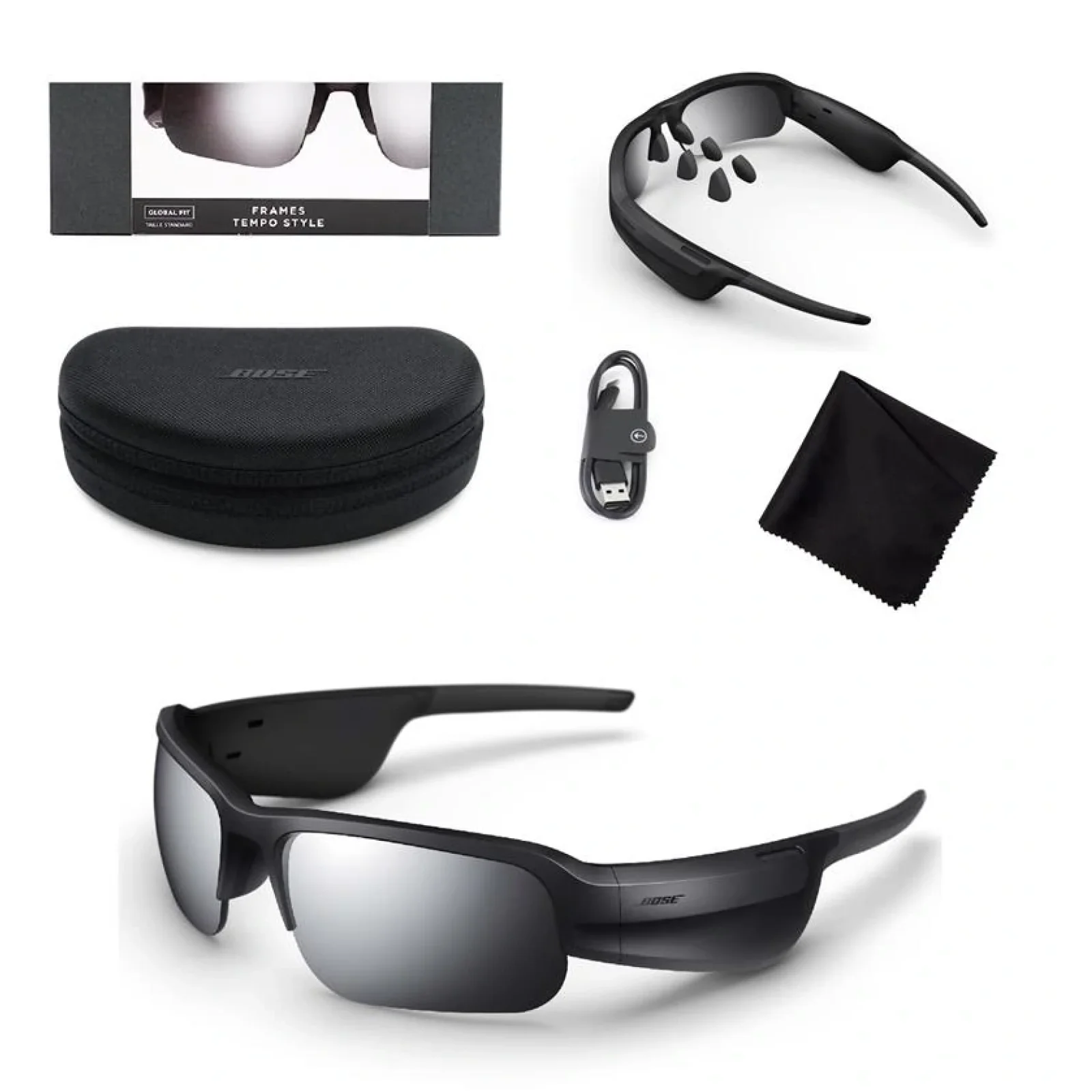 - Очки Bose Frames Tempo с черными зеркальными поляризационными линзами