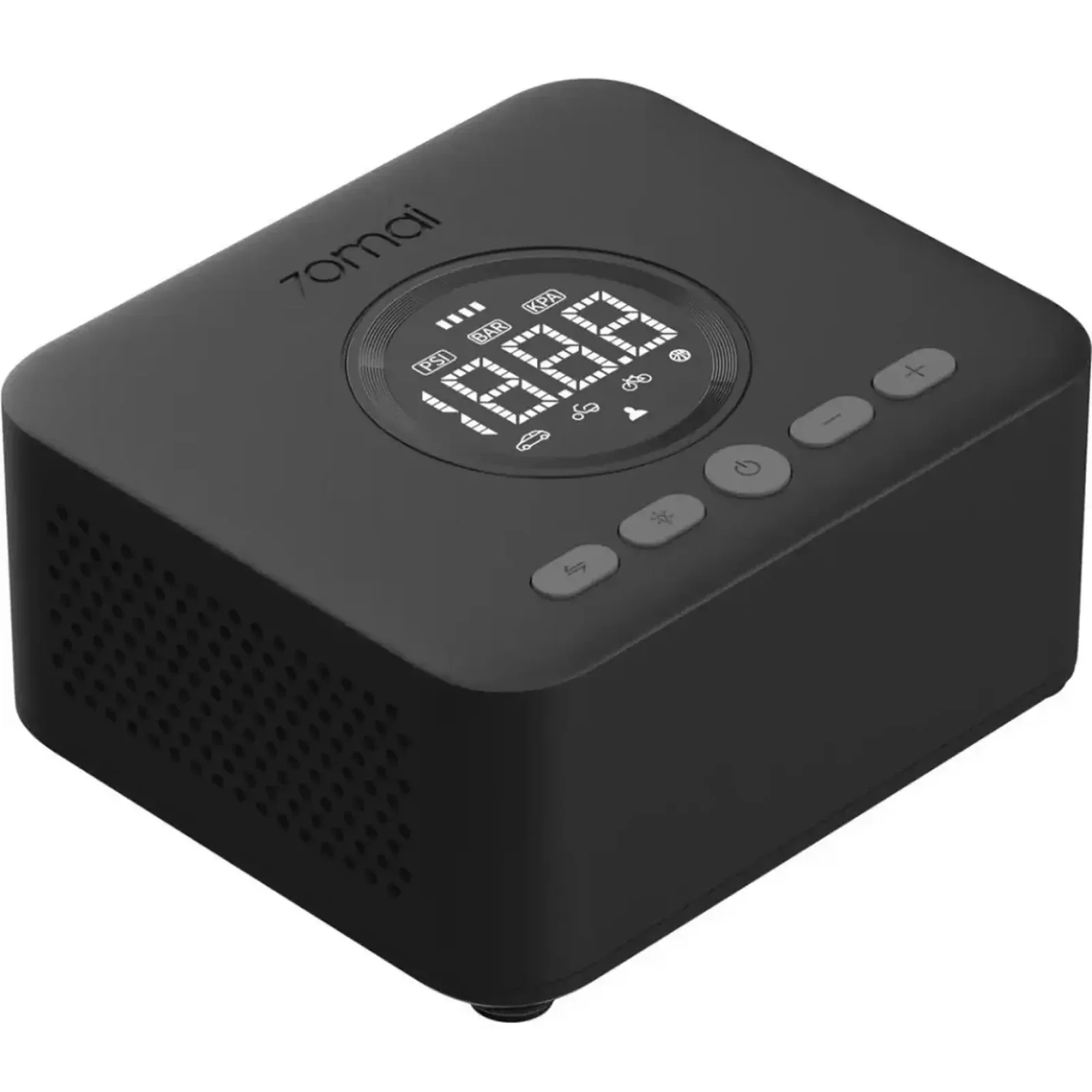 Встроенный цифровой манометр обеспечивает высокую точность измерения с минимальным шагом регулировки. Компрессор поддерживает единицы измерения PSI, Bar и kPa, что позволяет легко адаптировать его под разные задачи – от шин автомобиля до мячей, где важна максимальная точность.