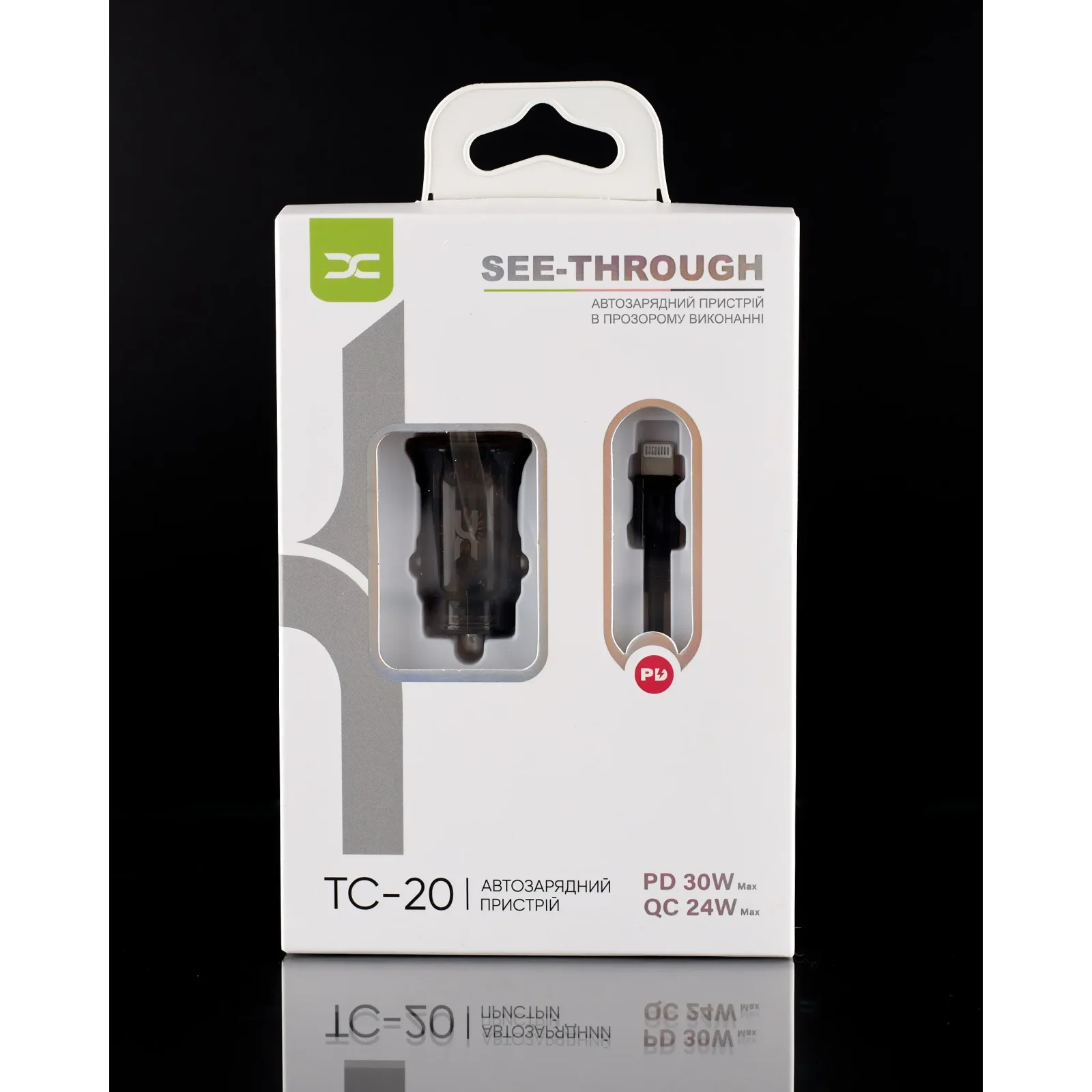 АЗУ DC 2в1 Lightning PD/20W+QC3.0/18W Fast Charger (TC-20) черный – это компактное автомобильное зарядное устройство с интегрированным кабелем Lightning, поддерживающее быструю зарядку PD для Apple-устройств и QC3.0 для Android-гаджетов.