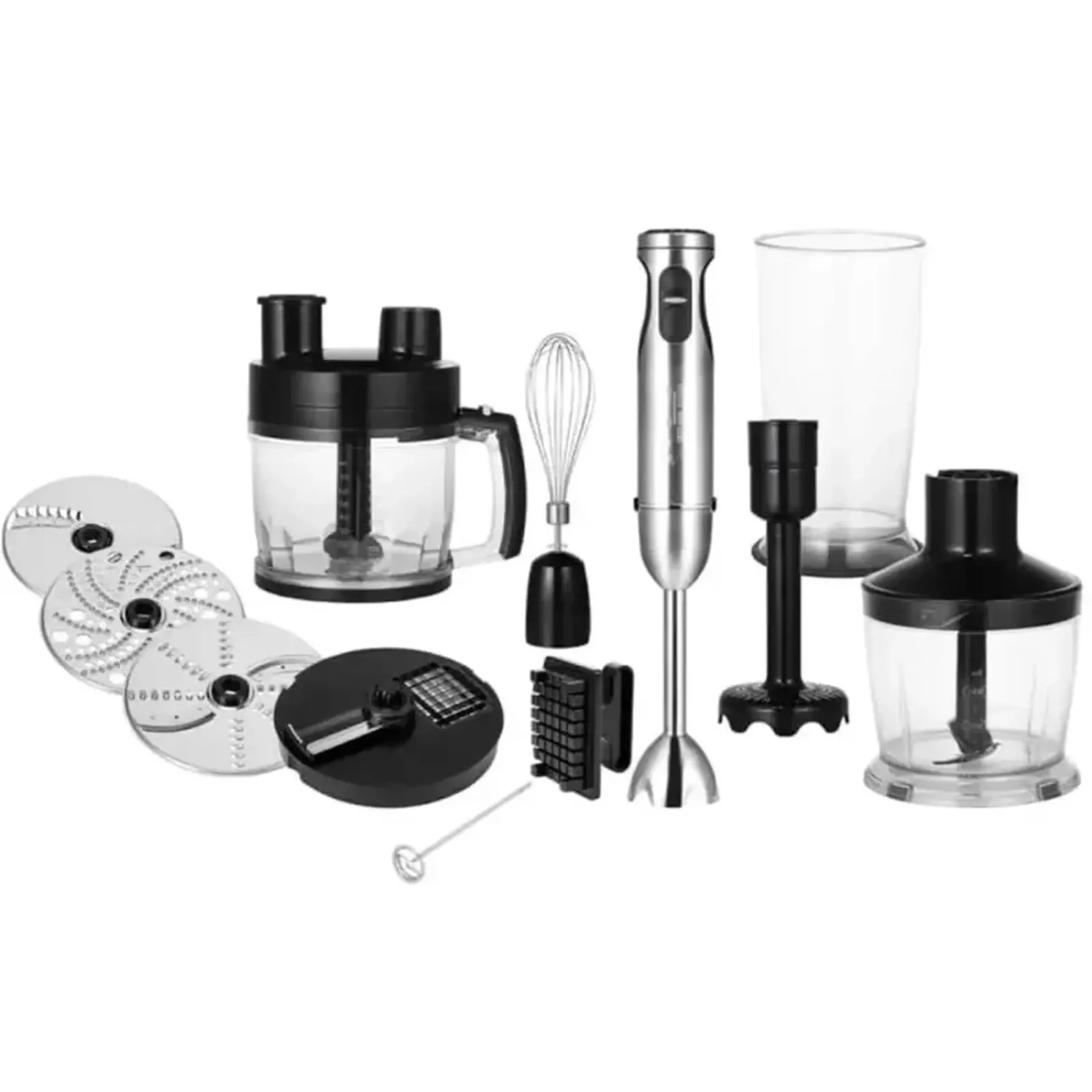 Два измельчителя (0,5л и 2л), несколько насадок и мерный стакан обеспечивают гибкость и удобство при приготовлении: маленькие порции, большие заготовки, соусы, кремы, пюре, нарезка овощей – все становится быстрым и простым. Насадки легко снимаются, а корпус погружной части выполнен из металла для большей надежности.
