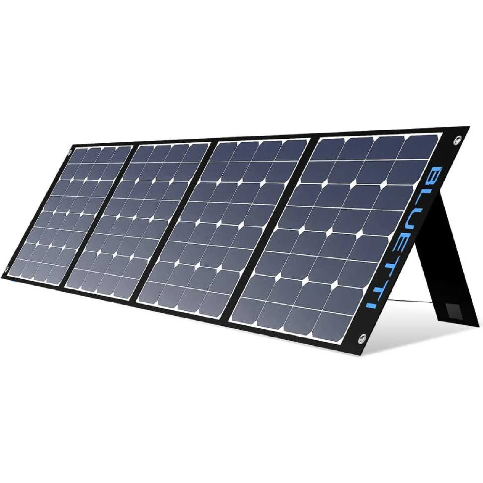 Солнечная панель Bluetti SP350 350W – это складная панель, изготовленная из ламинированного и прочного материала ETFE. Этот материал делает панель прочной, устойчивой к царапинам и, следовательно, имеет более длительный срок службы. Прочная ручка в верхней части панели упрощает ее перемещение.