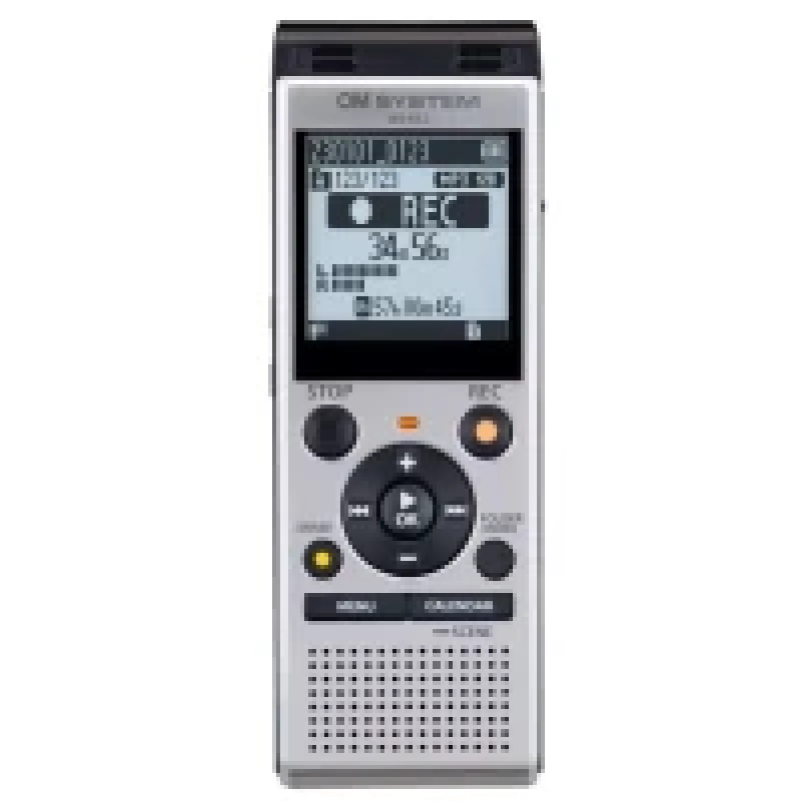 Цифровой диктофон; USB; запись стерео; формат записи: MP3; Карта памяти: microSD/microSDHC; Встроенная память 4 ГБ; Продолжительность записи: 128 кбит/сек: 65 ч, 64 кбит/сек: 131 ч (моно), 8 кб/сек 1040 ч (моно); динамик 20 мм; гнездо для микрофона, гнездо для наушников; Источники питания: Аккумулятор: 2 x AAA или Ni-MH аккумулятора; размеры: 111.5 x 39 x 18 мм; вес: 77 г; серебристый цвет