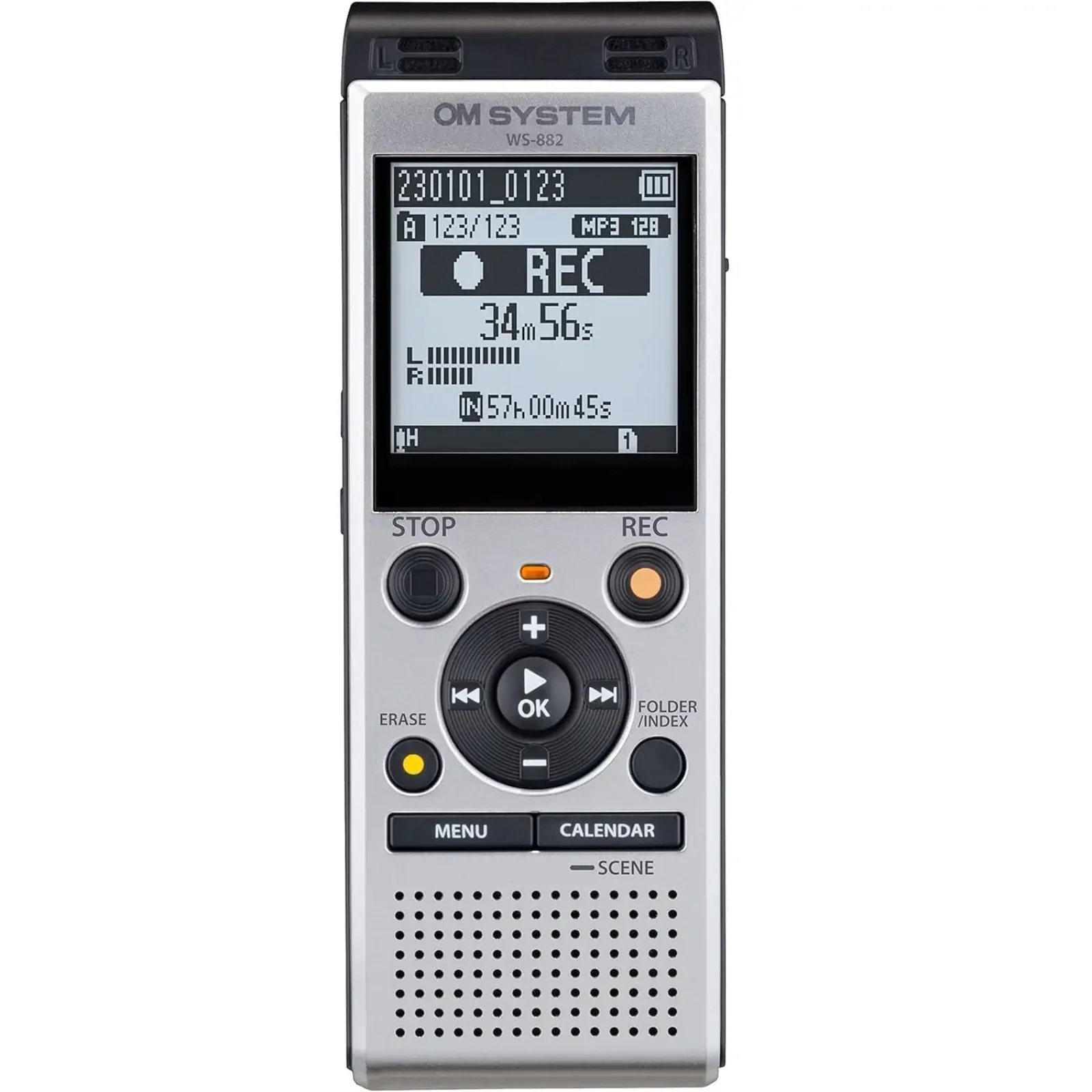 Цифровий диктофон Olympus WS?882 — справжній майстер нотаток. Його стереомікрофони розташовані під кутом 90° для чудового стереозвуку кожного запису, незалежно від того, чи це на занятті, чи на діловій зустрічі. Якщо промовець говорить тихо, інтелектуальний автоматичний режим цього аудіодиктофона збільшує рівень вхідного сигналу для легшого прослуховування з рівномірним рівнем гучності. Те саме стосується і голосної розмови. Звичайно, зручність також є головним пріоритетом. Саме тому диктофон Olympus WS-882 пропонує простий режим, який відображає лише важливу інформацію та часто використовувані функції для швидшої роботи. Вбудований USB-порт дозволяє підключати диктофон безпосередньо до ПК.