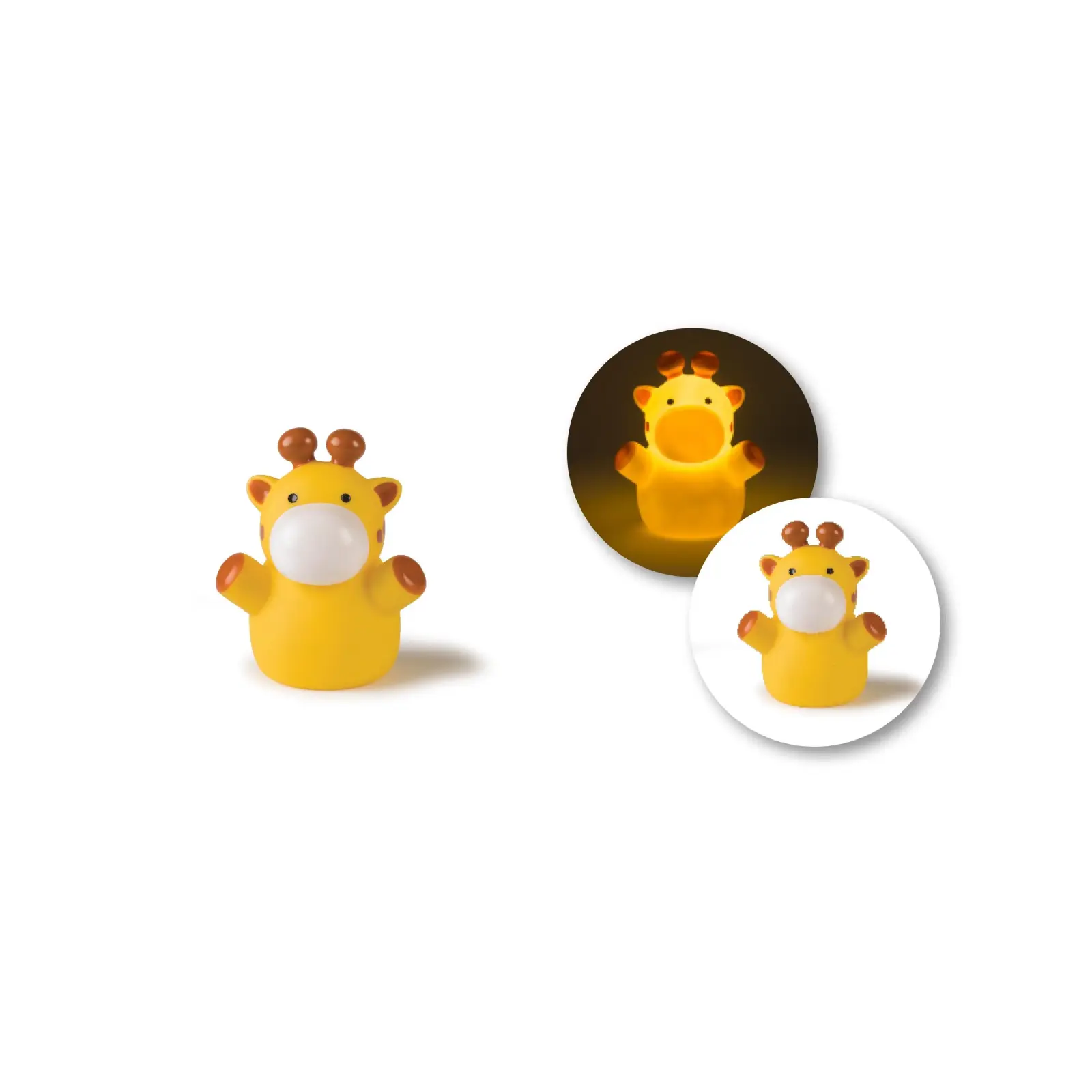 Маленький нічничок «Жираф» висотою 12 см жовтого кольору створить затишок в дитячій кімнаті і допоможе малюкові спокійно заснути. Нічник з таймером і м'яким LED-світлом у вигляді милої тваринки працює від 3-х ААА (LR03) батарейок (не входять в комплект). Аксесуар має 2 режими підсвічування і автоматично відключається після 30 хвилин роботи. Виготовлений з якісного нетоксичного, приємного на дотик пластику, що легко чиститься.