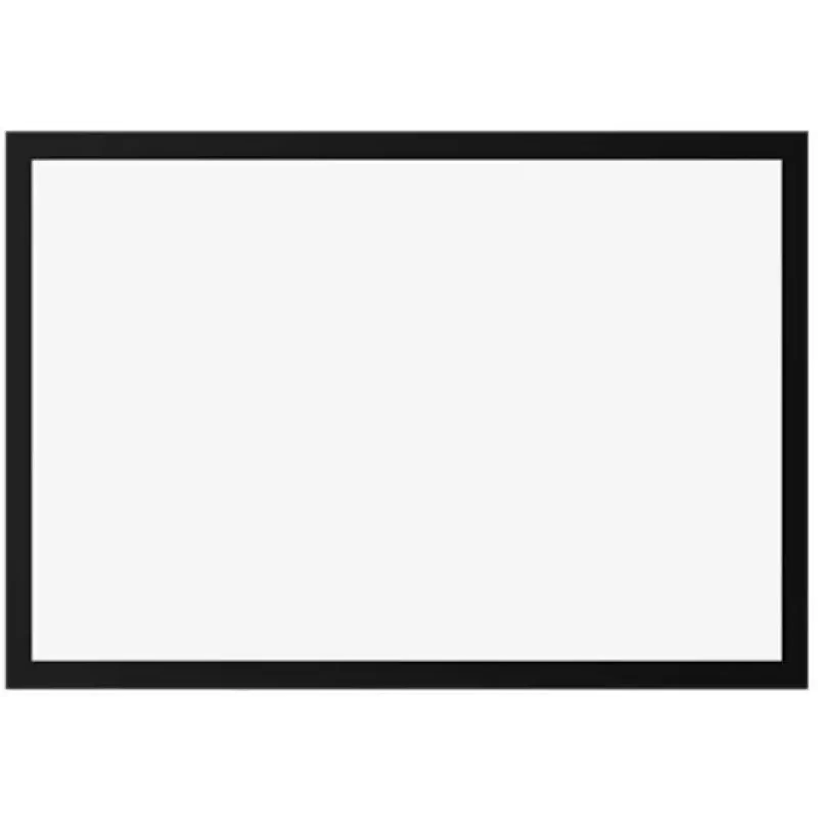 Екран оснащений вугільно-чорною рамкою шириною 8 см, яка візуально підсилює контраст, відсікає фон стіни та робить зображення схожим на картинку великого ТВ-панеля. Фіксована жорстка конструкція виглядає акуратно й преміально, органічно вписується в сучасний інтер’єр домашнього кінотеатру чи переговорної.