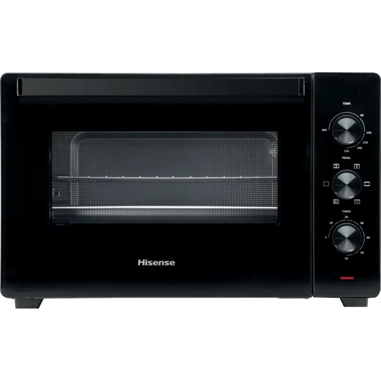 Мини-духовка Hisense может легко заменить полноразмерную духовку на небольшой кухне. Вы можете полностью адаптировать использование к своим потребностям, выбрав из пяти различных комбинаций режимов нагрева (нагрев верхней или нижней зоны в сочетании с конвекцией или грилем), установив температуру от 90 до 220 ℃ и время до 60 минут..