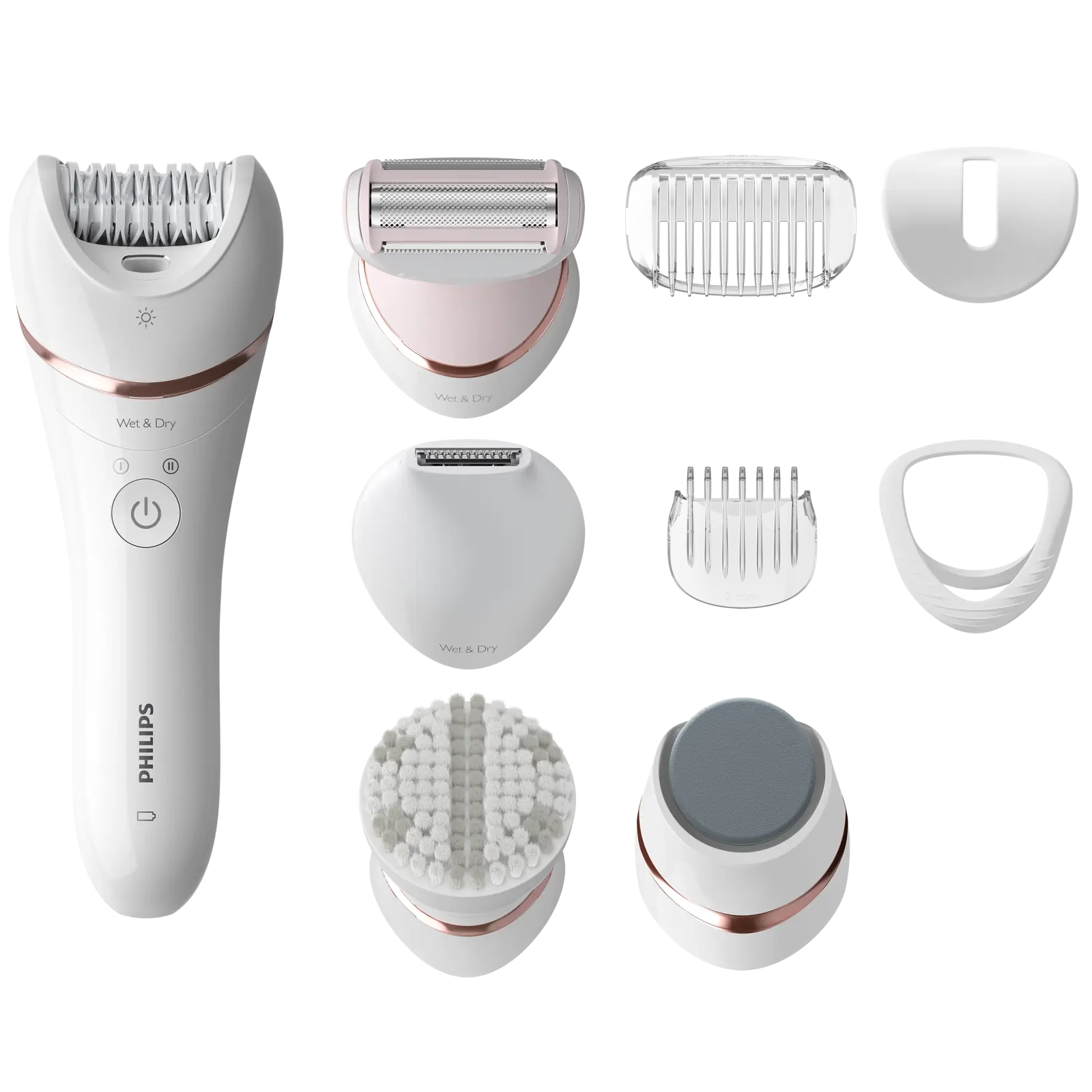 Эпилятор Philips BRE740/10 отличается расширенной комплектацией, которая делает его универсальным инструментом для ухода за телом. Бритвенная головка и триммер‑гребень позволяют аккуратно ухаживать за чувствительными зонами, обеспечивая чистый и ровный результат. Триммер для зоны бикини помогает корректировать форму и линии с точностью до одного миллиметра. Шлифовальная пилочка для стоп с поворотным точным диском «3‑в‑1» обеспечивает ухоженность ступней, делая кожу гладкой от пяток до кончиков пальцев всего за несколько минут. Такой набор превращает эпилятор в полноценное многофункциональное устройство для домашнего бьюти‑ухода.