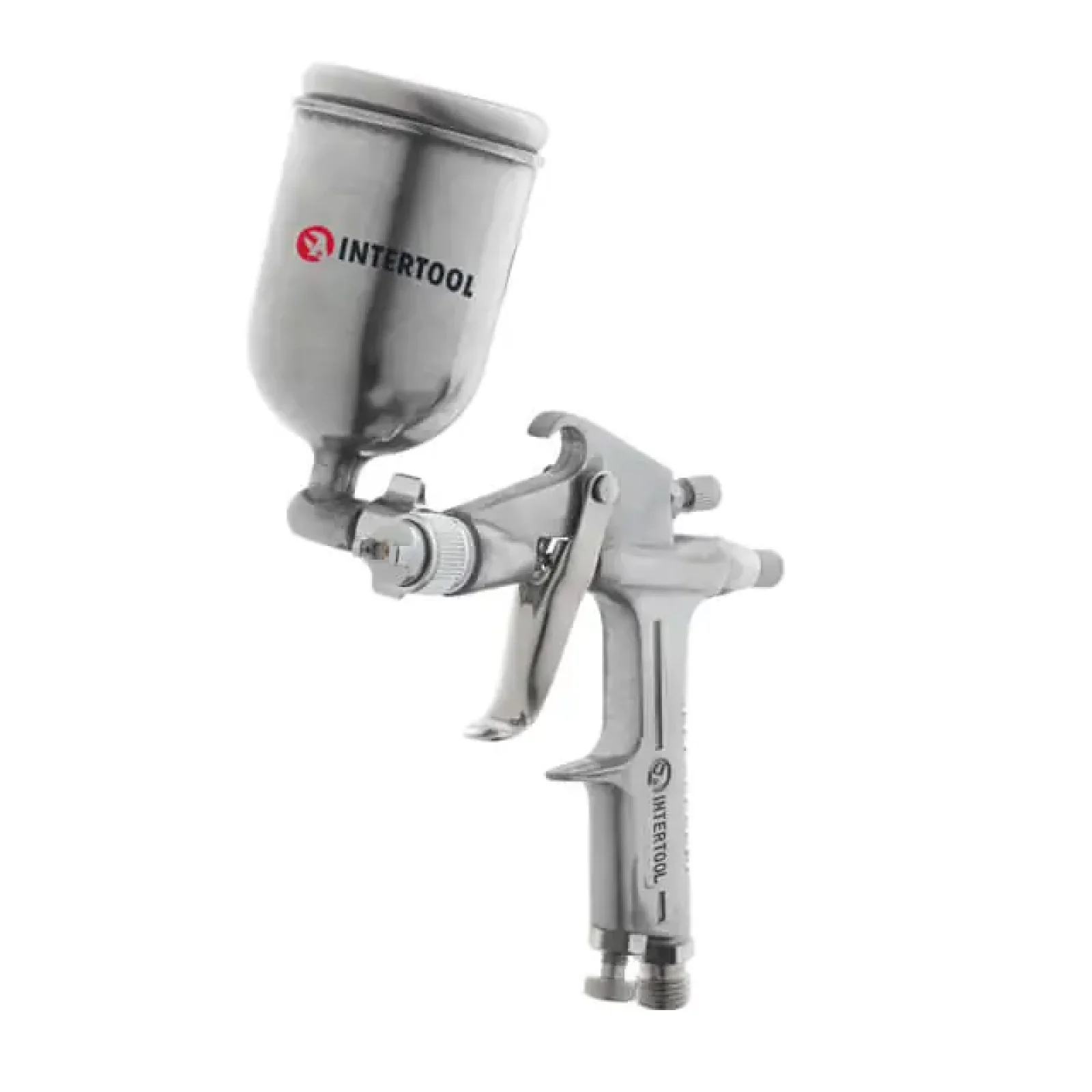 Оснащений бачком, який може змінювати кут нахилу відносно пістолета, що дуже зручно під час роботи у важкодоступних місцях. Повністю металевий корпус пістолета надійний та довговічний, бачок з металу дозволяє використовувати агресивні ЛФМ.