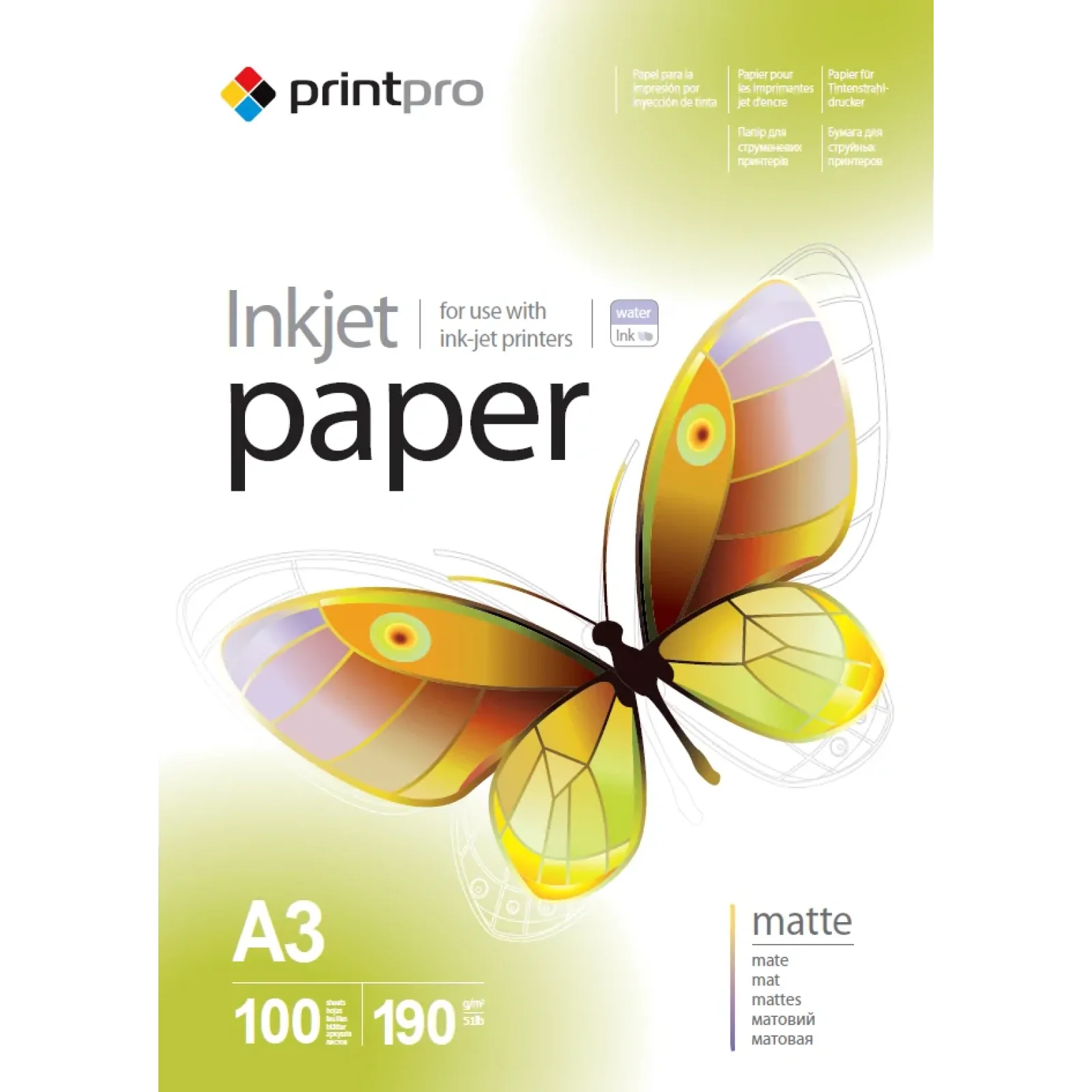 Матовий папір PrintPro для струменевого друку. Має високу ступінь білизни і матову рівну поверхню, забезпечує високий контраст, відсутність відблисків, відбитків пальців на нанесеному зображенні. Володіє широкою кольоровою гамою і хорошим усмоктуванням чорнил. Підходить для водорозчинних та пігментних чорнил. Чим менше у паперу показник щільності, тим менше повинна бути заливка листа. Зберігати в сухому місці в стороні від сонячного світла. Температура зберігання від 5°С до 25°С. Не містить шкідливих для здоров"я речовин. Надруковані знімки рекомендовано зберігати в альбомах або в рамках під склом. Ця модель паперу призначена тільки для друку на струменевому принтері та персонального використання.