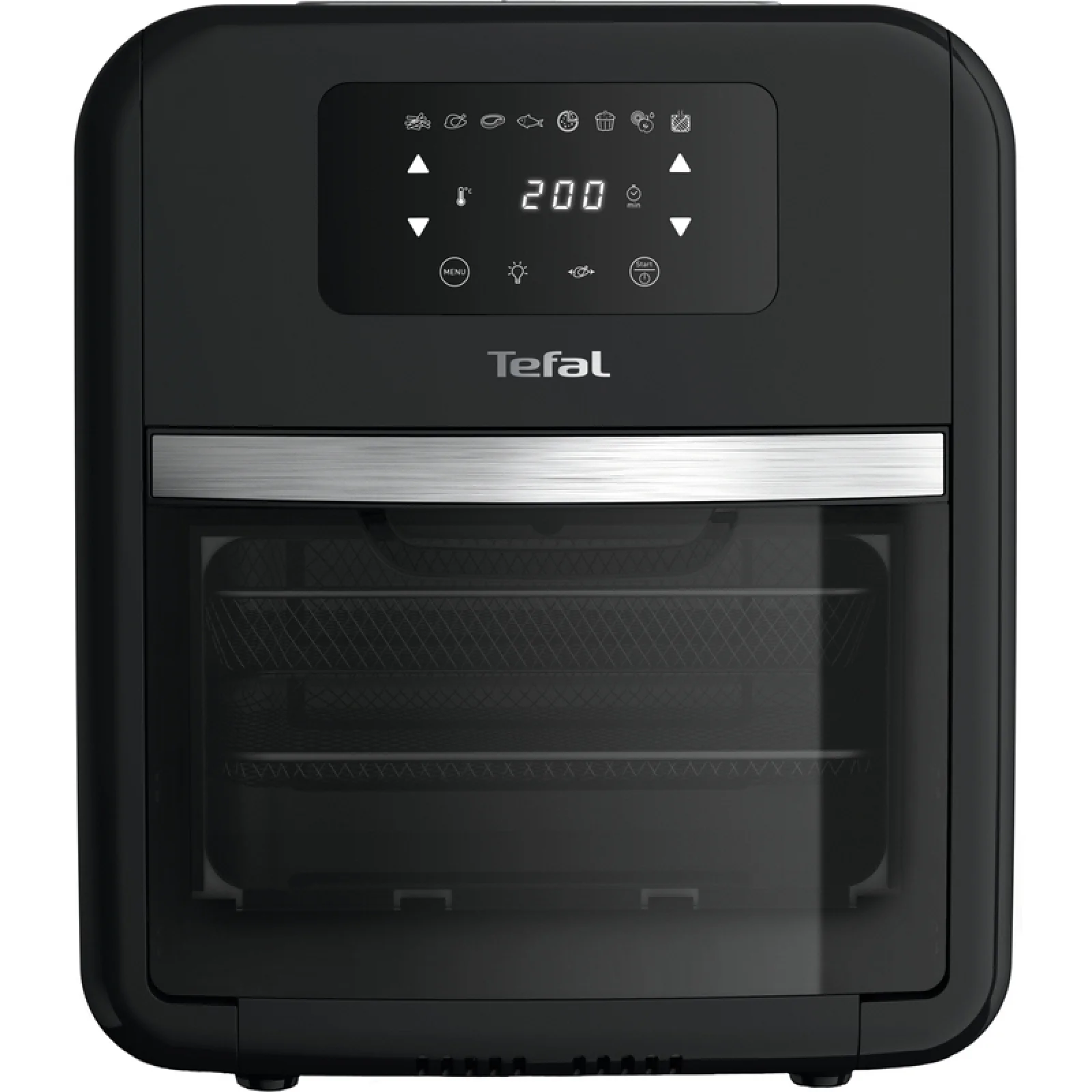 Мультипечь, Решетка для гриля со съемной ручкой, Решетка для переноски, Вилка для курицы, Поддон для капель, Корзина для картофеля фри, 2 решетки для дегидрации, Инструкция