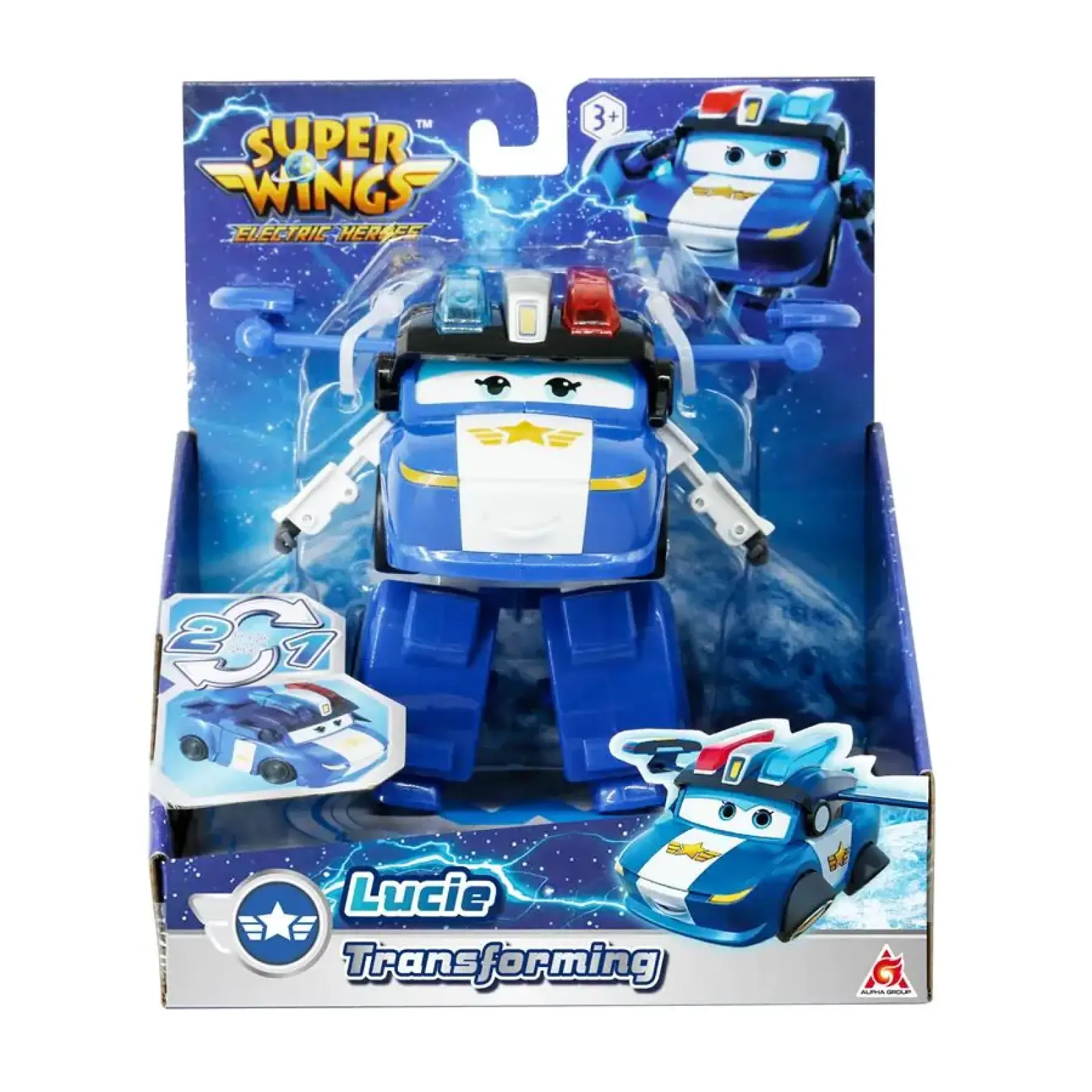 Люсі – поліцейська літак-машина в команді — має радар і захисний щит, що допомагають у пригодах та рятувальних місіях. У сезоні Electric Heroes вона приєдналася до оновленої команди, додаючи новий вид навичок і захисту.