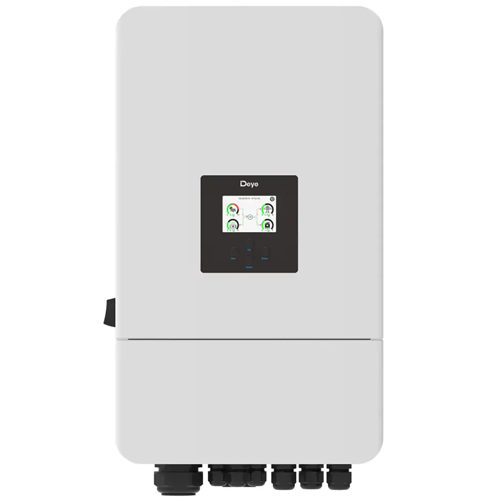 Deye SUN-12K-SG05LP3-EU-SM2 – сучасний трифазний гібридний інвертор має потужність 12000Вт, напругу акумуляторних батарей 48В, що зможе забезпечити надійну систему електроживлення. Підтримка трифазного струму надає можливість широкого застосування пристрою.