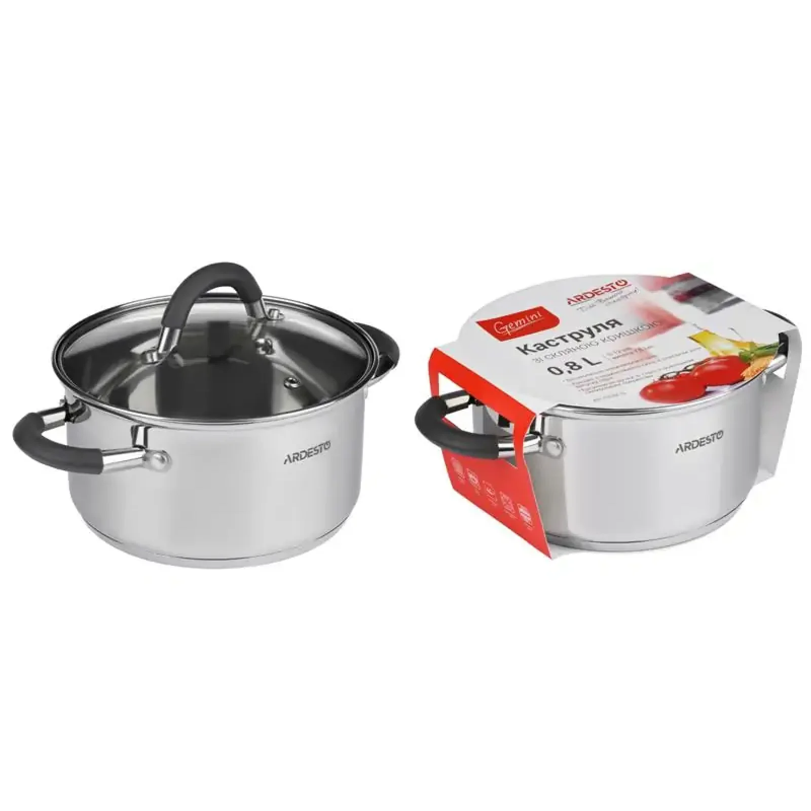 Матеріал: нержавіюча сталь. Матеріал ручки: нержавіюча сталь з силіконовим покриттям. Об'єм, л: 0.8. Діаметр, см: 12. Товщина стінок, мм: 0.5 Товщина дна, мм: 2.9. Мірна шкала: так. Кришка: скляна з отвором для пари. Сумісність з плитами: газові, електричні, склокерамічні, галогенні, індукційні. Очищення в посудомийній машині: ні. Країна виробник: Китай. Гарантія: 1 місяць у разі виробничого дефекту.