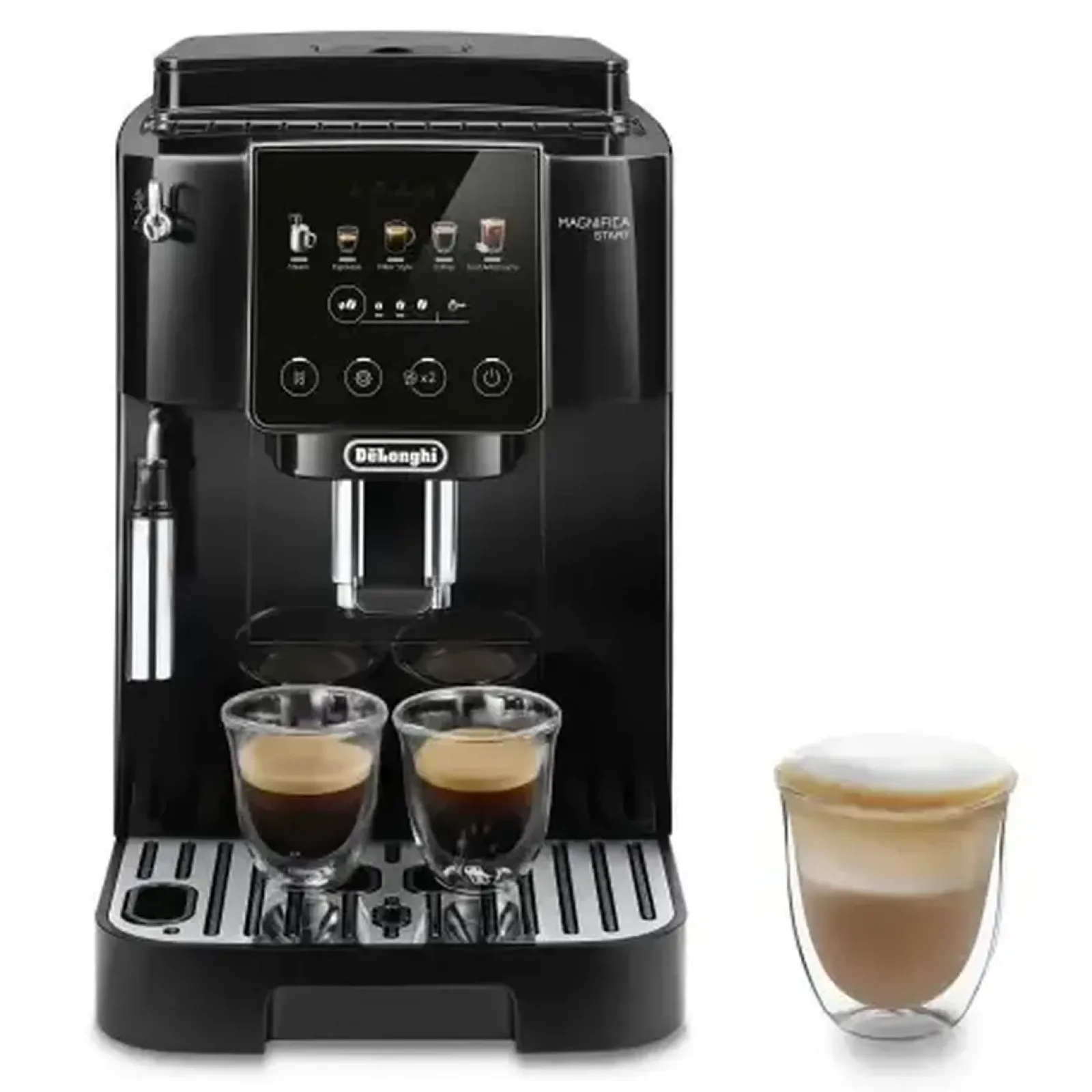 Наслаждайтесь легким приготовлением кофе Magnifica Start, который готовит 5 видов кофейных наслаждений, включая кофе, фильтрованный кофе и кофе со льдом, одним нажатием кнопки.
