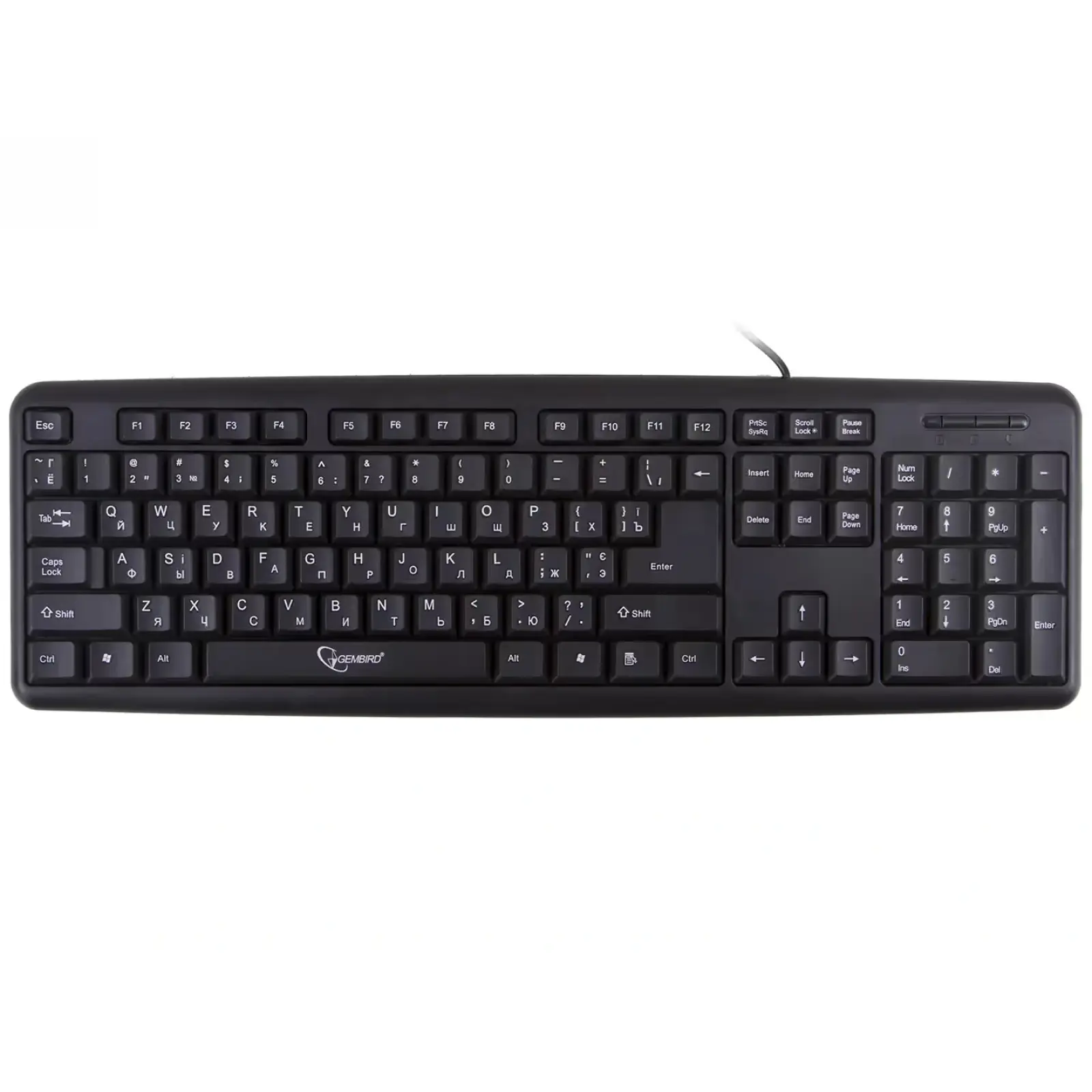 Gembird KB-U-103-UA Black — это классическая полноразмерная клавиатура, созданная для стабильной и комфортной ежедневной работы за компьютером. Она сочетает простоту подключения, эргономичный дизайн и тихую мембранную конструкцию, что делает её универсальным решением как для офиса, так и для домашнего использования.