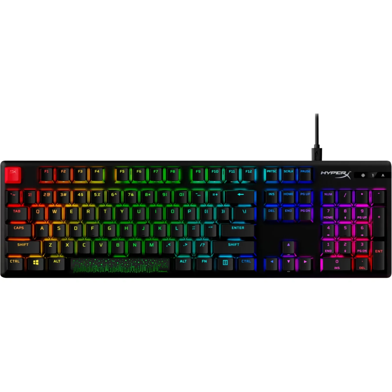Механические переключатели HyperX Red, полностью алюминиевый корпус, компактный портативный дизайн со съемным USB Type-C кабелем, яркая RGB-подсветка с динамическими эффектами, расширенные настройки через HyperX NGENUITY, три уровня наклона клавиатуры, встроенная память на три профиля, игровая режим, 100% anti-ghosting и N-Key Rollover функции.