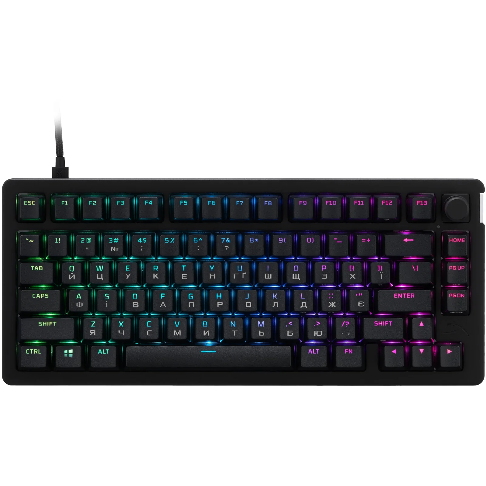 Клавиатура поддерживает RGB-подсветку с 16 777 216 цветами, динамическими эффектами и возможностью сохранения до 10 профилей прямо на устройстве. Программное обеспечение HyperX NGENUITY позволяет легко настраивать подсветку, макросы и создавать собственные эффекты для каждой клавиши.