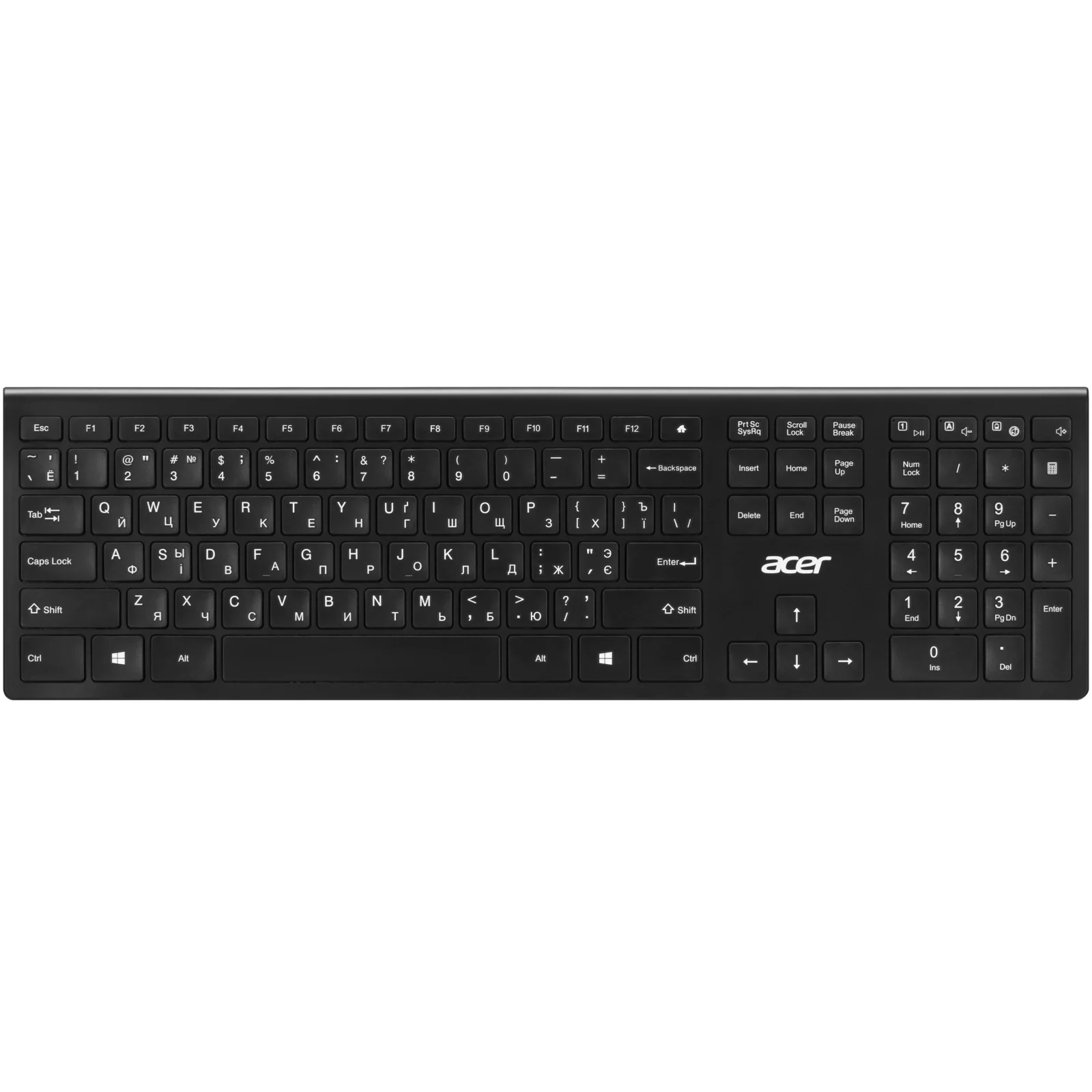 Acer OKR020 Black – это стильная и надежная беспроводная клавиатура, созданная для тех, кто ценит комфорт во время работы и легкость подключения. Ее стандартный форм-фактор и низкопрофильные ножничные клавиши обеспечивают тихий и точный ход, а встроенный цифровой блок добавляет функциональности для работы с числами и таблицами.