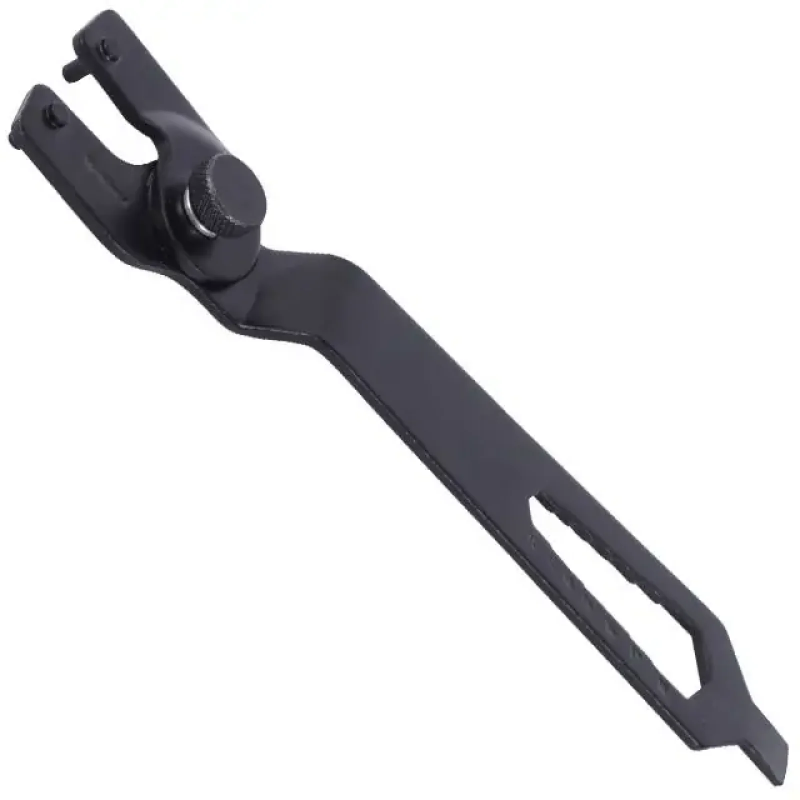 Відстань між робочими зачепами можна регулювати за допомогою гвинта з насічками для зручного регулювання розміру. Таким чином, ключ універсальний та підходить для болгарок з різним діаметром робочого диска: 115, 125, 180, 230 мм. На рукоятці також розміщені отвори для монтажу чи демонтажу шестигранних кріплень.