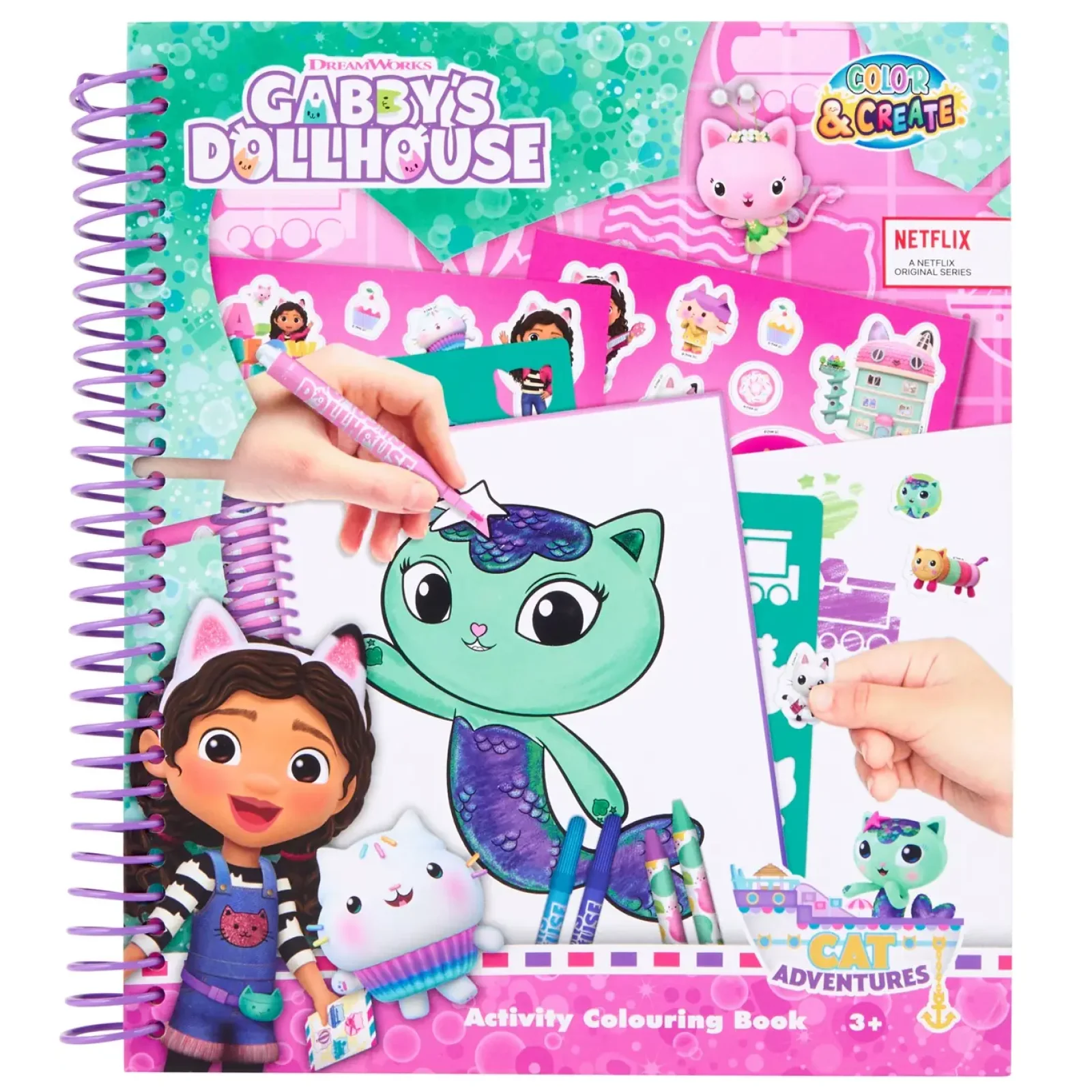 Набор содержит 16 раскрасок, 6 карандашей и 6 фломастеров, трафареты, декоративные узоры, наклейки, резинку и точилку. Рекомендуемый возраст: от 3 лет. Размер: 26x24x2.8см.