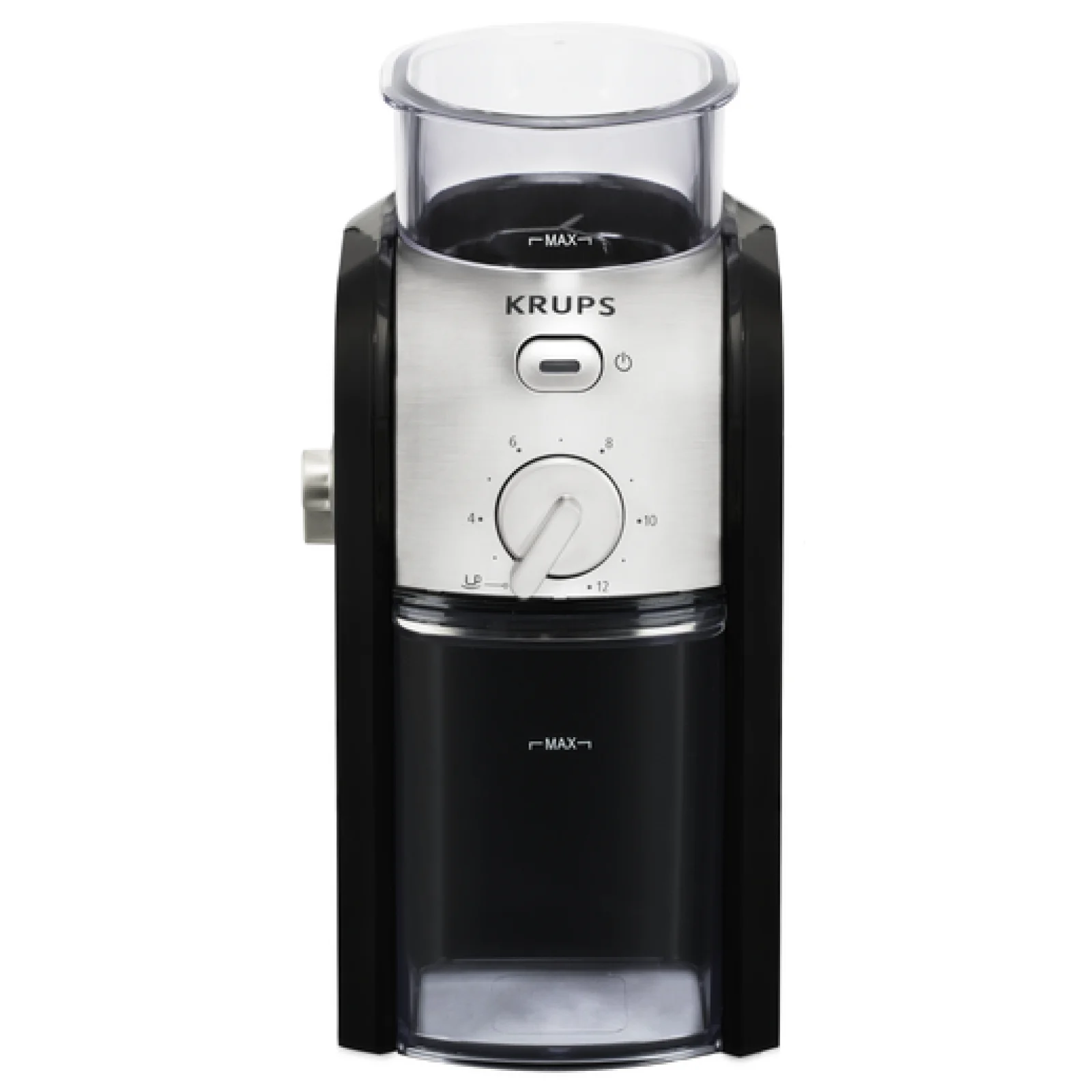 Кавомолка Krups GVX242 — це жорновий млин для тих, хто хоче стабільно смачну каву з правильним помелом для будь-якого способу заварювання. Вона працює на конічних жорнах, зберігає аромат зерна та дає рівномірний помел — основа насиченого еспресо, чистої воронки чи насиченого френч-пресу.