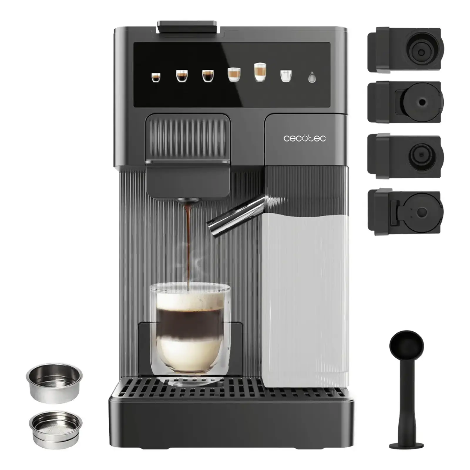 Автоматическая кофемашина CECOTEC FreeStyle Latte — это стильное и функциональное решение для тех, кто ценит индивидуальность в каждой чашке. Модель выполнена в современном дизайне с использованием качественных материалов, что позволяет ей легко интегрироваться в любой кухонный интерьер. Главное преимущество системы FreeStyle — максимальная простота управления в сочетании с возможностью гибко настраивать параметры напитка под личные предпочтения.