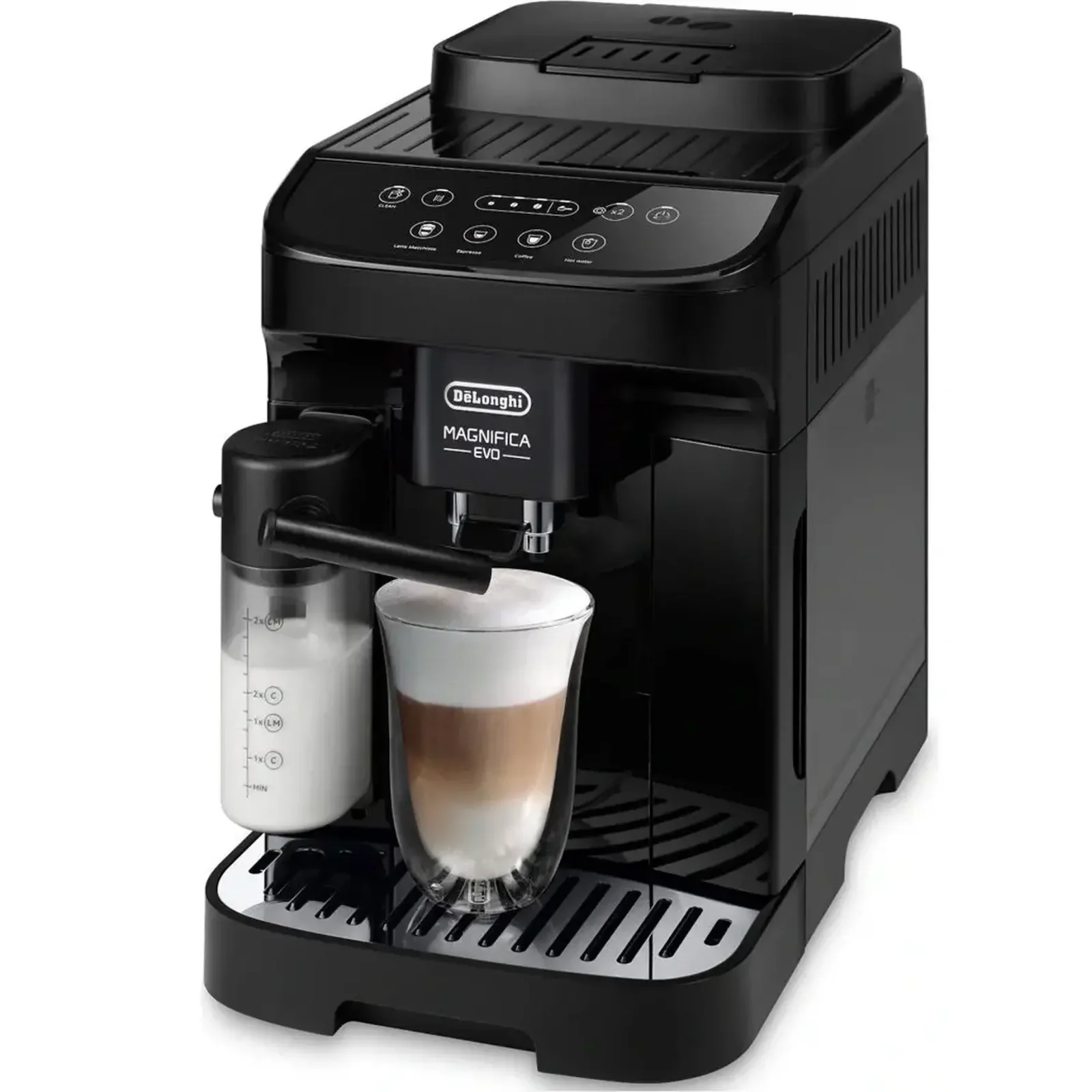 Magnifica Evo имеет удобную сенсорную панель управления со специальными интуитивно понятными цветными значками для выбора напитков.