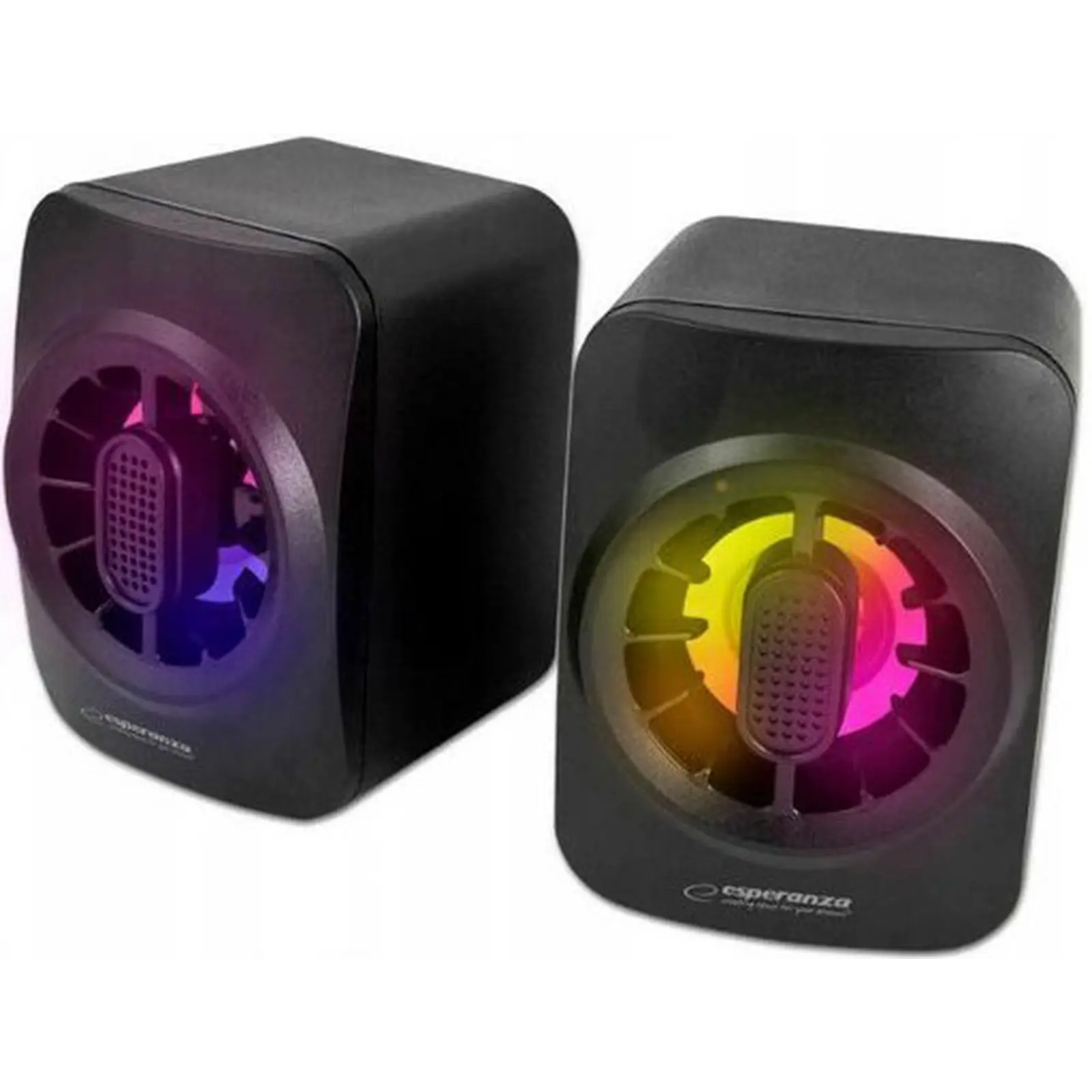 Високоякісні стереодинаміки USB зі світлодіодним підсвічуванням. Вони гарантують чистий і природний звук, мають вбудований регулятор гучності. Працюють з усіма комп'ютерами з виходом на динамік і USB-виходом. Високоякісні матеріали, які використовуються у виробництві, захищають від електризації та генерації електромагнітних перешкод.