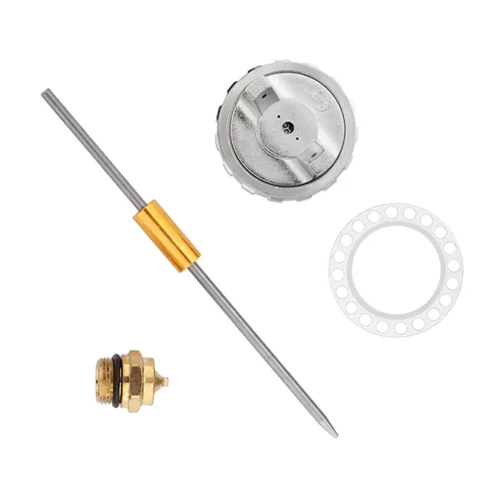 Набір форсунки PT-2005 дозволяє відновити роботу фарбопульта, а також може збільшити його функціонал завдяки діаметру форсунки 1,8 мм. Набір спеціально розроблений для фарбопультів системи HP. Цей комплект включає важливі елементи: дюзу, повітряну головку, голку і прокладки, надаючи повний інструментарій для ефективного нанесення фарби.