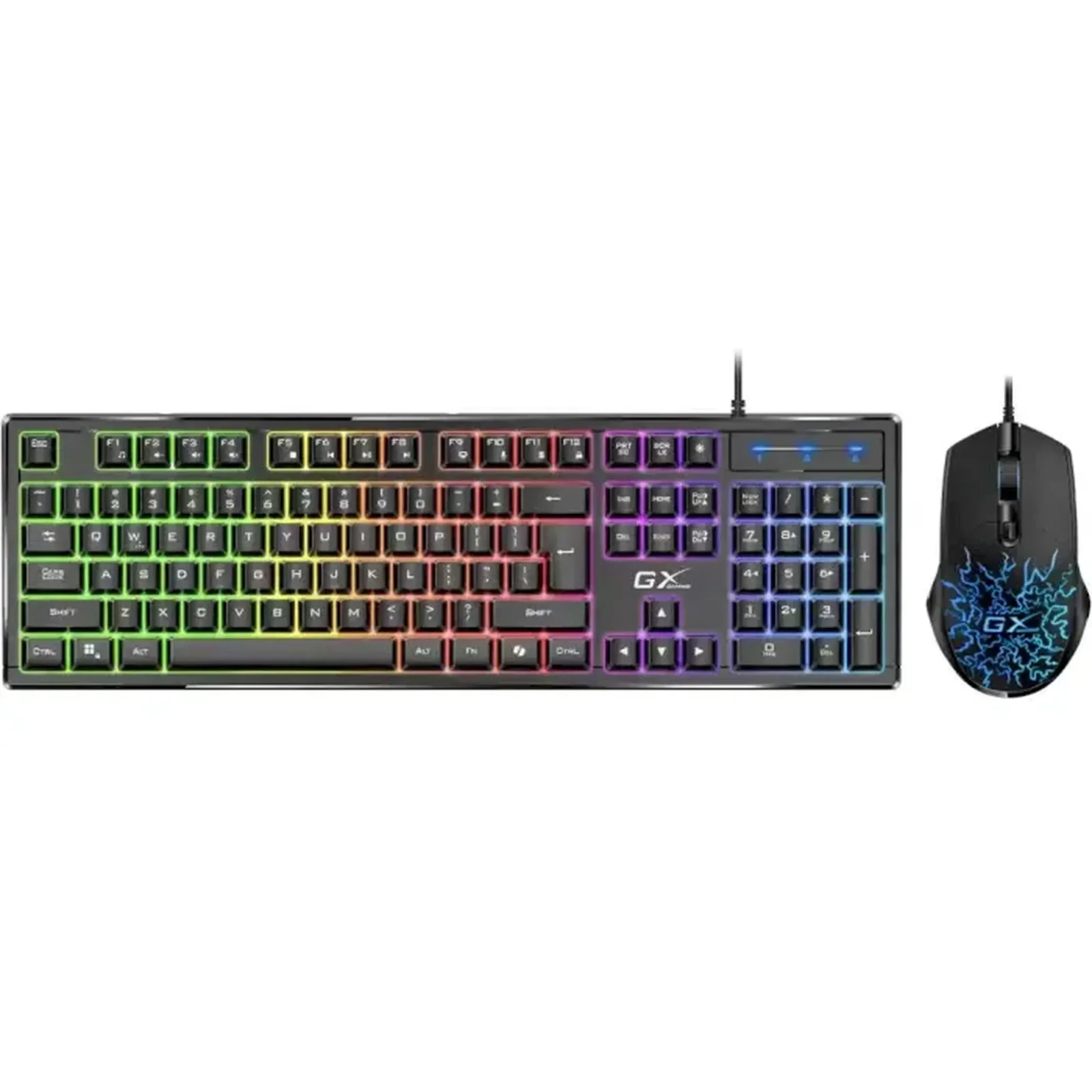 Комплект (клавиатура, мышь) Genius Scorpion KM-GX3 Black (31330011406) – это проводной игровой набор формата «plug & play», созданный для пользователей, которым нужна яркая подсветка, удобный набор текста и точное управление в играх. Он подключается по USB и совместим с большинством ПК без установки дополнительного программного обеспечения.