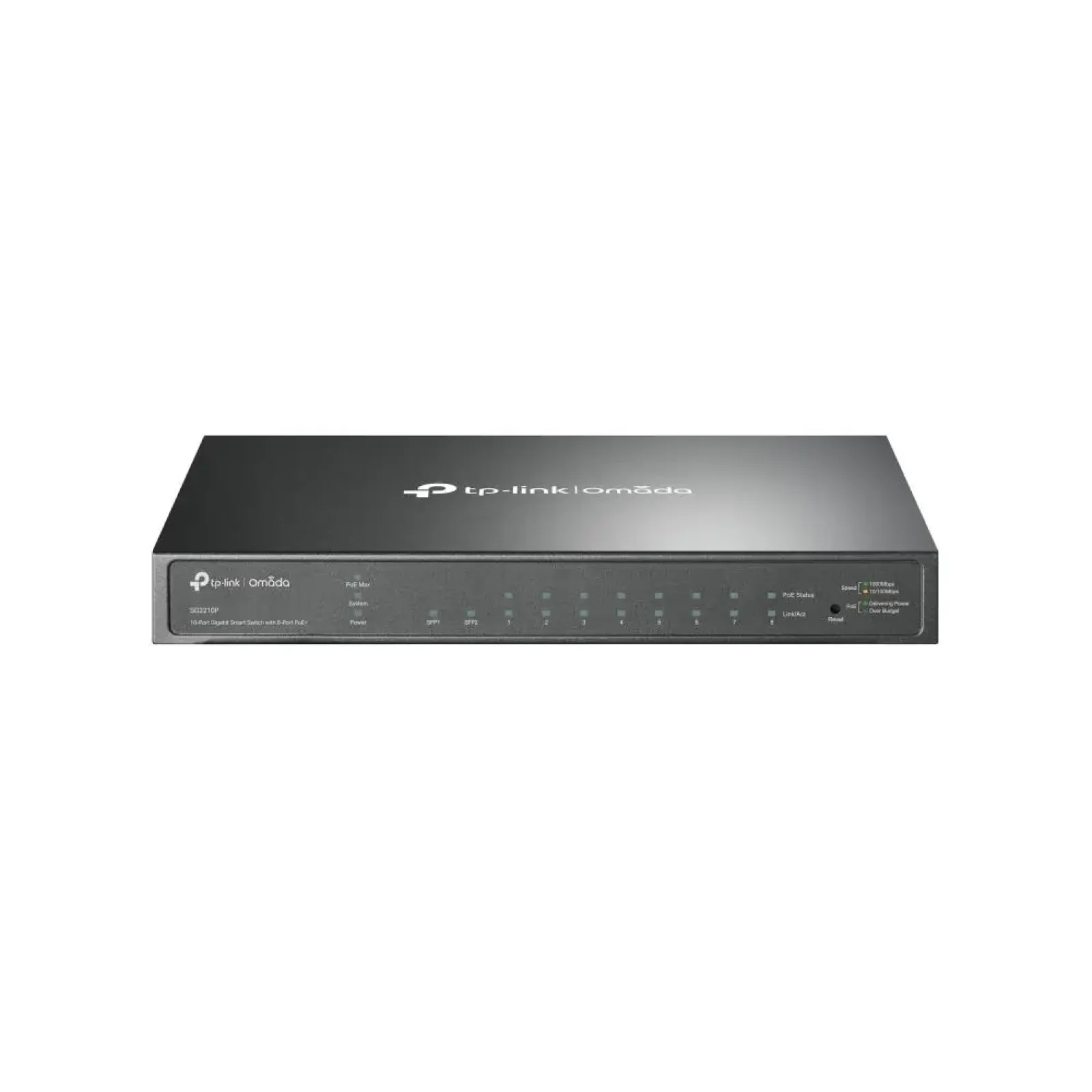 Серія Omada | Type L2 | Десктоп/п'єдестал | 8x10Base-T / 100Base-TX / 1000Base-T | 2xSFP | IEEE 802.1D | IEEE 802.1p | IEEE 802.1Q | IEEE 802.3ab | IEEE 802.3ad | IEEE 802.3i | IEEE 802.3u | IEEE 802.3x | IEEE 802.3z | IEEE 802.1s | Порти PoE 8 | Вага без упаковки 1.4 кг