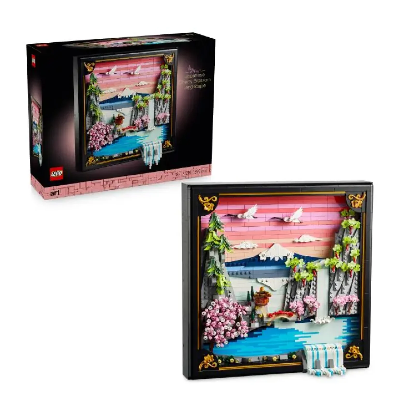 Наповніть свій дім кольорами та природою за допомогою набору для дорослих LEGO® Art Японський пейзаж із цвітом сакури (31218). Натхнений красою японської весни й художнім стилем укійо-е, цей приголомшливий настінний 3D-декор із кубиків зображує гору Фудзі, чайний будиночок, міст, водоспад, летючих японських журавлів, а також квітучу сакуру, клен «Санго-Каку» та японські хвойні дерева койомакі. Цей естетичний декор для кімнати розміщений у чорній лакованій рамці-вітрині й має 2 варіанти експонування. Його можна розмістити на стіні за допомогою спеціального кріплення або ж поставити на будь-яку рівну поверхню. Водоспад на картині виходить за межі рами, тож на стіні він ллється просто вниз, але його можна налаштувати так, щоб він виливався на рівну поверхню. Цей набір LEGO Art пропонує дорослим спокійне, захопливе заняття для розслаблення: побудову витвору настінного мистецтва з рослинами з кубиків LEGO. Ця модель, яка стане чудовим подарунком в японському стилі собі або поціновувачам мистецтва, містить інструкції, які допоможуть вам у творчій діяльності. Набір містить 1892 деталі.