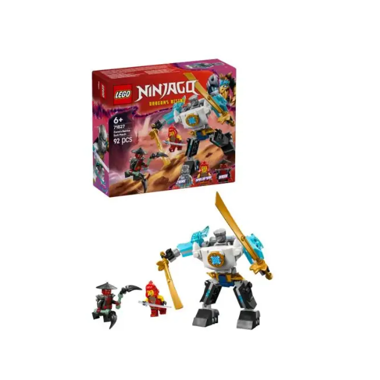 Ігровий набір LEGO® NINJAGO® Бойовий костюм-робот Зейна (71827) дозволяє хлопчикам і дівчаткам віком від 6 років влаштовувати захопливі пригоди з 3 сезону серіалу Ніндзяго: Повстання драконів. Цей конструктор для дітей містить робота NINJAGO з рухомими руками, ногами й кистями, верхньою частиною тіла, яка обертається на 360 градусів, грудною клітиною, що відкривається, щоб помістити мініфігурку всередину, і два великі мечі. Цей ігровий набір LEGO містить три мініфігурки персонажів NINJAGO: Зейна з 2 сюрікенами, Вайлдфаєр із кришталевим мечем-катаною й Дрікс, майстера Рою із Забороненої п?ятірки, із 2 серпами, тож діти можуть насолоджуватися годинами пригод у сюжетних іграх у об?єднаному світі NINJAGO. Серед дитячих конструкторів серії LEGO NINJAGO є роботи, дракони й храми, щоб шанувальники могли розігрувати сюжетні пригоди. Кожен ніндзя-набір можна створити завдяки додатку LEGO Builder, який допоможе вам і вашій дитині у легкій та зрозумілій будівельній пригоді.