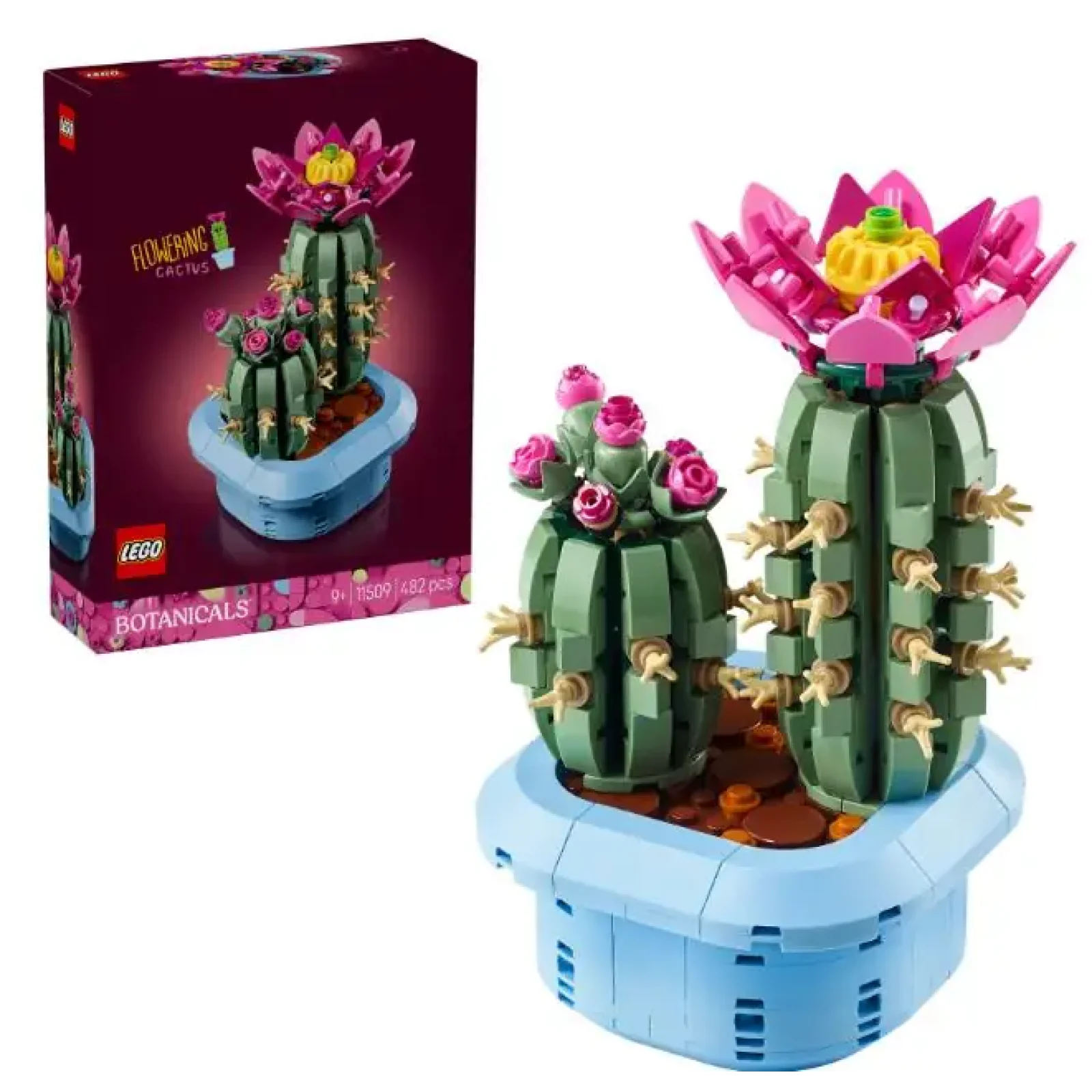 Потіште юних любителів рослин набором для конструювання LEGO® Botanicals Цвітіння кактуса (11509) для дітей віком від 9 років. Сповнений цікавих деталей, він дозволяє дівчаткам і хлопчикам весело проводити час, створюючи крутий декор із кактусами. Діти відчують, як розквітає їхня творчість, створюючи 2 моделі кактусів. Більший кактус LEGO знаходиться в повному розквіті й має рожеву квітку з жовтою серединкою на верхівці, а менший — рожеві бутони на різних стадіях росту. Кактуси мають автентичний відтінок зеленого кольору й «висаджені» в пастельно-блакитні горщики, що дозволяє дітям легко використовувати їх як прикрасу спальні або інших приміщень оселі після завершення конструювання. Цей набір для конструювання LEGO Botanicals — чудовий подарунок для дівчаток і хлопчиків на день народження та інші особливі події, а також для любителів природи будь-якого віку. Він доступний у додатку LEGO Builder, де діти можуть збільшувати та обертати свої збірки, а також відстежувати свій прогрес. Набір містить 482 деталі.