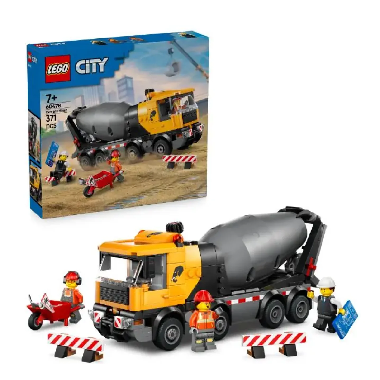 Любителям будівельних іграшок сподобається набір для складання моделі LEGO® City Бетонозмішувач (60478) для дітей від 7 років. Цей детальний бетонозмішувач на 8 гумових колесах має великий барабан із гвинтовою системою Архімеда. Діти можуть повертати ручку, щоб змішувати й виливати цемент LEGO через регульований жолоб, як при виливанні справжнього цементу. Ця велика іграшкова вантажівка також має кабіну водія, яка нахиляється, щоб забезпечити доступ до двигуна. Серед аксесуарів: тачка, дорожній знак і 2 бар'єри, а також мініфігурки водія, будівельника та архітектора для творчої гри. Ця дитяча модель будівельної вантажівки LEGO City стане чудовим подарунком до дня народження або свята для 7-річних хлопчиків і дівчаток, які люблять будівельну техніку. Додайте цей набір до інших із серії LEGO City (продаються окремо), щоб розіграти ще більше пригод. Діти можуть насолоджуватися інтуїтивним будівництвом цього іграшкового набору транспортних засобів у додатку LEGO Builder, збільшуючи та обертаючи моделі за допомогою 3D-інструкцій, а також зберігаючи та відстежуючи прогрес. Набір містить 371 деталь.