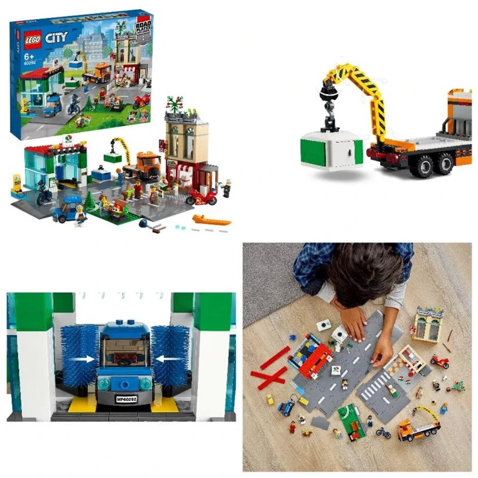 Центр города LEGO® City всегда в движении. Шерли Кипер приехала на своём грузовике, чтобы забрать мусорные контейнеры, полицейские преследуют преступника, а пожарный борется с огнём в пиццерии. И посмотрите, сколько здесь всего классного! Тут есть автомойка, зарядная станция для электромобилей и парк с детским аттракционом. Вы даже можете посетить додзё, чтобы изучить боевые искусства. Потрясающе!