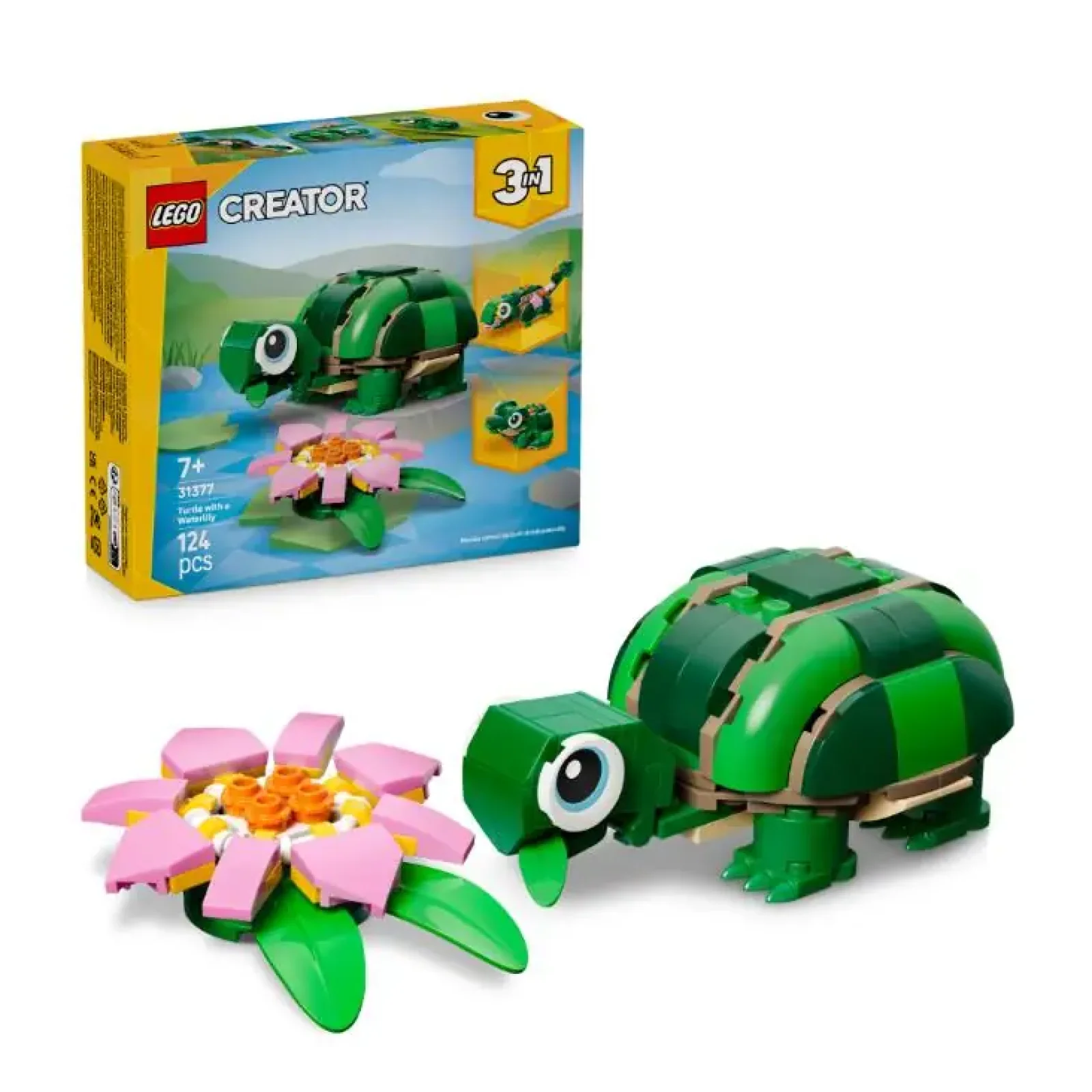 Набір для конструювання LEGO® Creator 3 в 1 Черепаха з квіткою водяної лілії (31377) дозволяє дітям віком від 7 років розігрувати творчі історії про тварин. Ця мила іграшка з тваринами для дівчаток і хлопчиків пропонує 3 різні варіанти побудови з одного набору кубиків. Діти можуть вибирати, що будувати. Можливо, це буде іграшкова черепаха з рухомою головою й ротом, яка доповнюється красивою рожевою квіткою латаття. Потім її можна перебудувати на іграшку-хамелеона з рухомою головою і хвостом або жабу з рухомим ротом. Після закінчення гри будь-яку з моделей можна використати як цікавий елемент декору кімнати. Цей набір LEGO Creator 3 в 1 підживить дитячу уяву та стане милим і практичним подарунком для дівчаток і хлопчиків, які люблять диких тварин і сюжетні ігри. А завдяки додатку LEGO Builder діти також насолоджуватимуться простою та інтуїтивно зрозумілою будівельною пригодою. Вони можуть збільшувати й обертати набори за допомогою 3D-інструкцій з конструювання, відстежувати свій прогрес і зберігати їх в одному місці. Зверніть увагу: моделі неможливо зібрати одночасно. Набір містить 124 деталі.