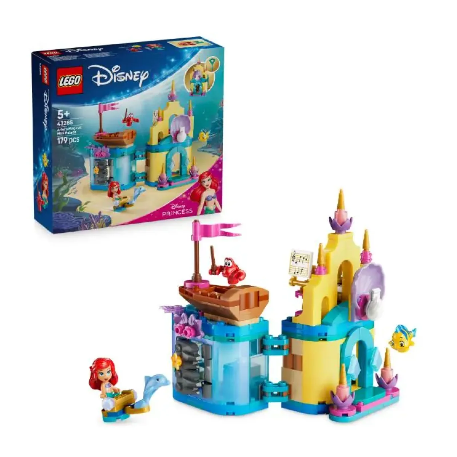 Діти можуть дослідити свій творчий потенціал за допомогою цього фантастичного набору LEGO® ? Disney Принцеса Чарівний мініпалац Аріель (43285) для шанувальників фільму Disney «Русалонька» віком від 5 років. Збірний набір для складання мікросвіту — невелика іграшка, всередині й зовні якої знаходиться цілий світ. Цей конструктор LEGO для дівчаток і хлопчиків включає 3 персонажів LEGO ? Disney (Аріель, Флаундера й Себастьяна), мініпалац і грот, які можна зачинити на ключ, маленький човен і багато іншого. Портативний конструктор із мікрозамком створено для розваг у дорозі. Ця цікава ідея подарунка чудово підійде як для дівчаток, так і для хлопчиків на день народження або з будь-якої нагоди. Набір для складання замку містить безліч деталей та аксесуарів для нескінченних творчих ігор. Створюючи власні історії, діти набуватимуть впевненості в собі й розвиватимуть уяву. Крім того, вони насолоджуватимуться інтуїтивним будуванням із додатком LEGO Builder, збільшуючи й обертаючи зображення за допомогою 3D-інструкцій, а також зберігаючи та відстежуючи прогрес. Набір містить 179 деталей.