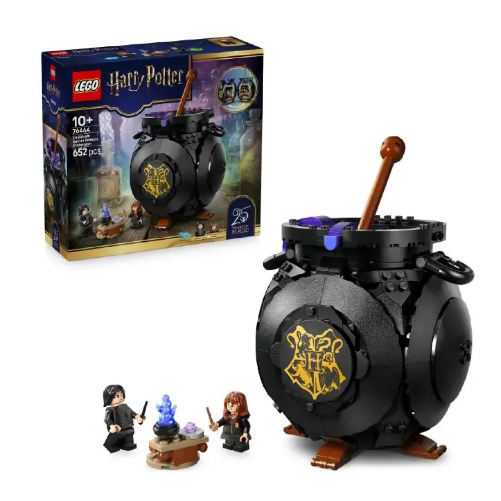 Подаруйте дітям чарівний набір для конструювання LEGO® Harry Potter™ (76464) для гри й демонстрування: чарівний казан із секретною класною кімнатою для уроків зіллєваріння. Посуньте мішалку й відкрийте деталізовану класну кімнату зі знімними столами, пляшечками для зілля й інгредієнтами для різних видів зілля з кубиків LEGO. Відтворіть урок зіллєваріння в Гоґвортсі з мініфігурками професора Снейпа й Герміони Ґрейнджер. Шукайте Видру-патронуса Герміони, що входить до колекції патронусів на честь 25-річчя LEGO Harry Potter (у наборах, що продаються окремо), а також 1 із 14 колекційних портретів Гоґвортсу. Киплячий казан із кубиків стане чудовим декором кімнати в стилі «Гаррі Поттера» між іграми та приверне увагу як прикраса на Гелловін. Подаруйте цей універсальний творчий набір дівчаткам, хлопчикам та всім шанувальникам Гаррі Поттера віком від 10 років. І будуйте з упевненістю, використовуючи додаток LEGO Builder: збільшуйте, обертайте в 3D й відстежуйте прогрес за допомогою простих цифрових інструкцій. Набір містить 652 деталі.