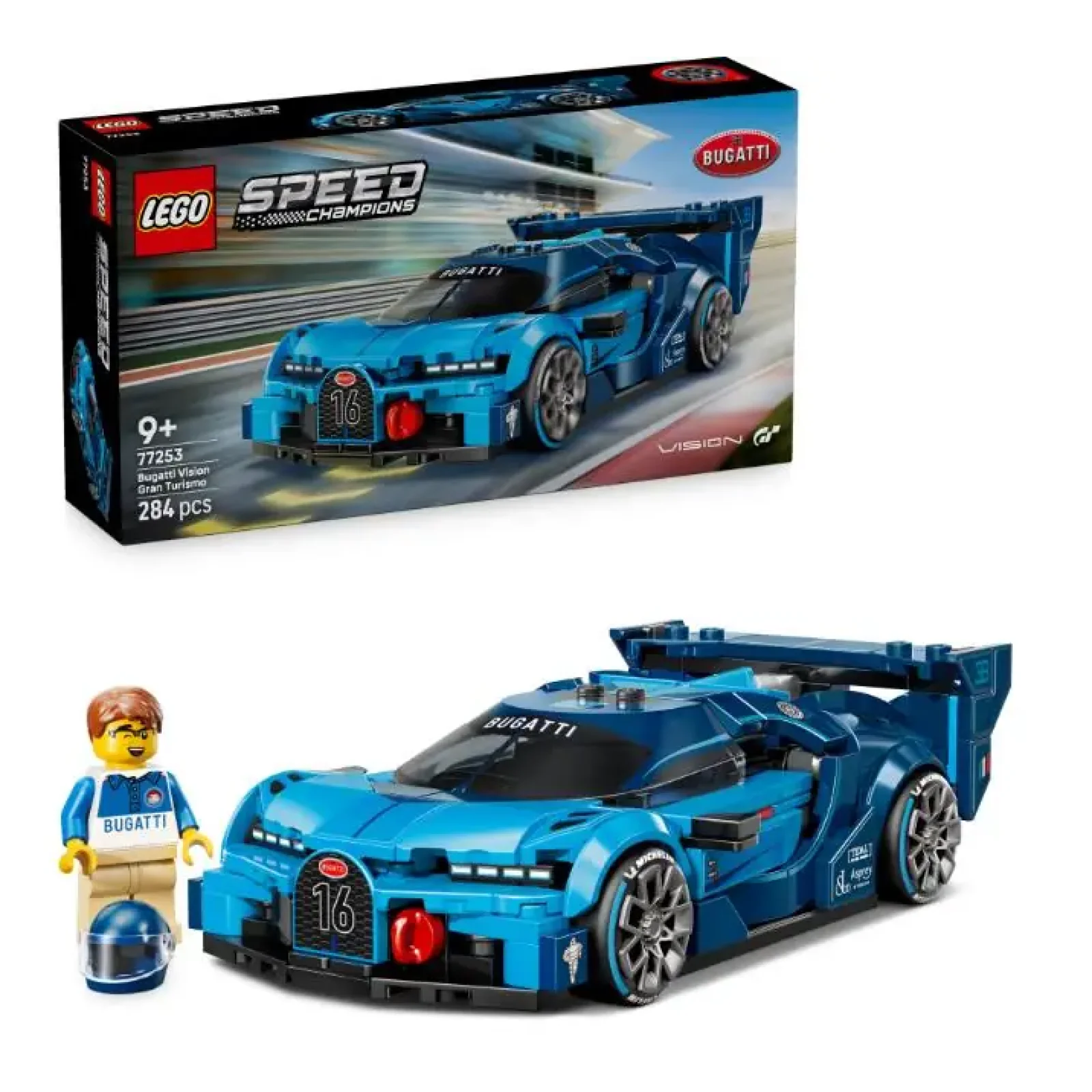 Хлопчики й дівчатка віком від 9 років можуть складати, гратись і демонструвати цей приголомшливий LEGO® Спортивний автомобіль Bugatti Vision GT Hyper (77253). Вперше в історії цей вишуканий набір із моделлю Bugatti дозволяє поціновувачам цього автомобіля й серії відеоігор Gran Turismo оцінити елегантність і потужність цього інженерного дива. Ця модель автомобіля Bugatti включає деталі з автомобіля, створеного Bugatti для відеоігри Gran Turismo у 2015 році. Серед них — підковоподібна передня решітка, заднє антикрило, характерні фари з вісьмома лінзами, даховий спойлер і широкі шини з написом Michelin. До набору також входить мініфігурка в екіпіруванні Bugatti, яку можна посадити в кабіну, щоб насолодитися перегонами. Набори для конструювання автомобілів серії LEGO® Speed Champions є чудовими подарунками для дітей, що допомагають їм створювати копії з широкого асортименту легендарних транспортних засобів. А з додатком LEGO Builder діти також можуть будувати більш упевнено: масштабувати, обертати в 3D й відстежувати прогрес за допомогою простих цифрових інструкцій. Набір містить 284 деталі.