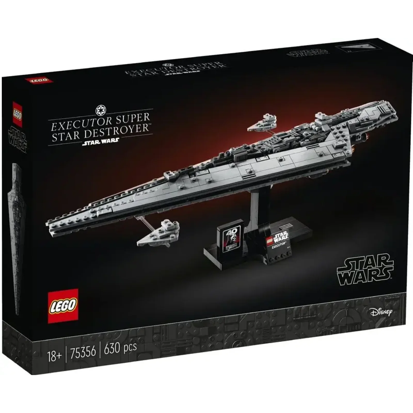 LEGO Star Wars 75356 — це легендарний Executor, прапорний корабель Дарта Вейдера з «Повернення джедая», у масштабі 1:950 з 6314 деталей для дорослих колекціонерів від 18 років. Цей Super Star Destroyer довжиною 1,3 м з розмахом крил 42 см — наймасштабніша модель Імперського флоту в історії LEGO, що відтворює деталізований корпус, радари, турелі, ангари з TIE-файтером і хмарочосоподібний місток.
