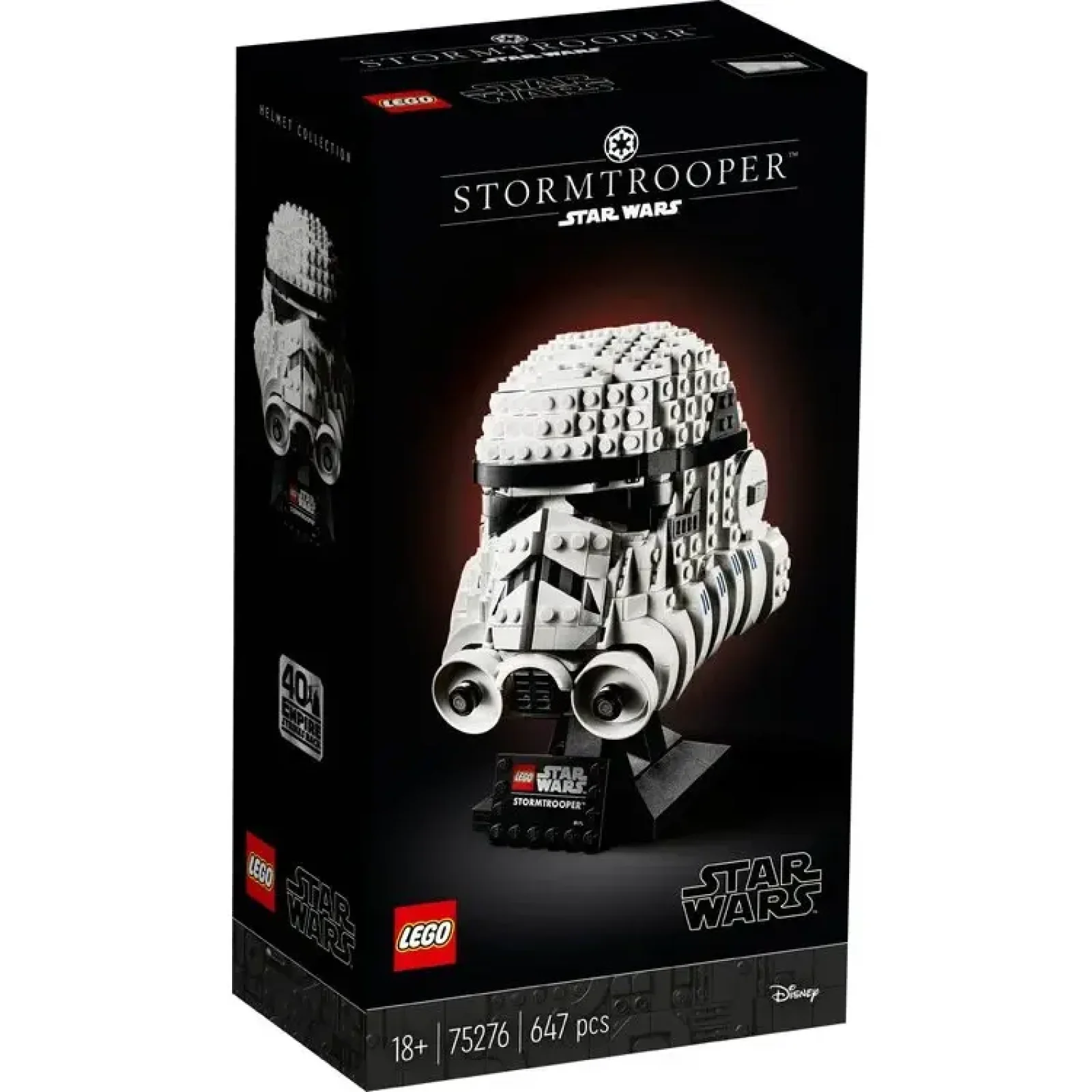 Шолом виконаний у класичному білому кольорі з чорними вставками, відтворюючи всі характерні елементи оригінального дизайну. Деталі підібрані так, щоб збирання було захопливим і водночас дозволяло насолодитися процесом створення точної репліки культового елемента.